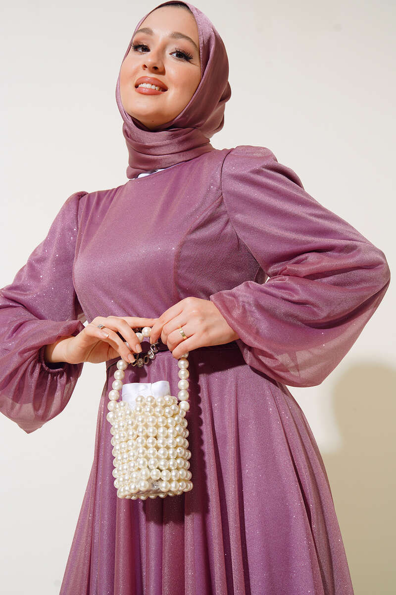 Yeni sezon model abiye elbisemiz özel gecelerinizde parlamanıza olanak sağlayacaktır. Şık tasarımına eşlik eden simleri elbisemizi canlandırmıştır. Sırt fermuarlı elbisemiz kemerlidir. Bilekleri lastikli olan elbisemiz sezonun favorileri arasındadır.