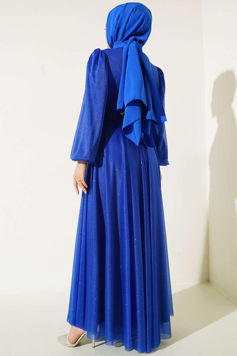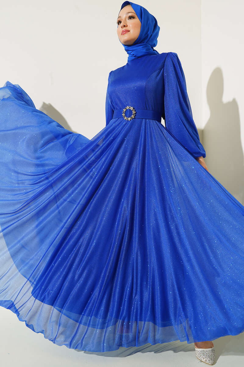 Yeni sezon model abiye elbisemiz özel gecelerinizde parlamanıza olanak sağlayacaktır. Şık tasarımına eşlik eden simleri elbisemizi canlandırmıştır. Sırt fermuarlı elbisemiz kemerlidir. Bilekleri lastikli olan elbisemiz sezonun favorileri arasındadır.