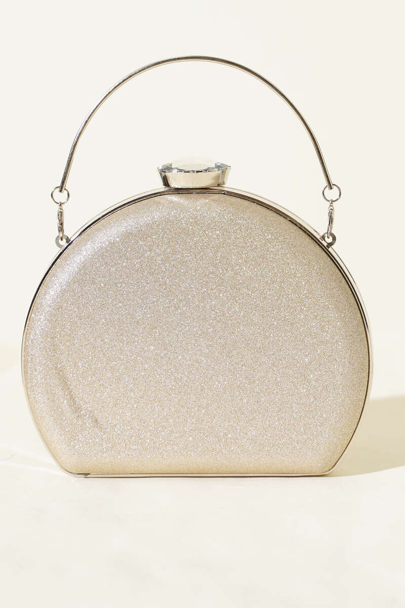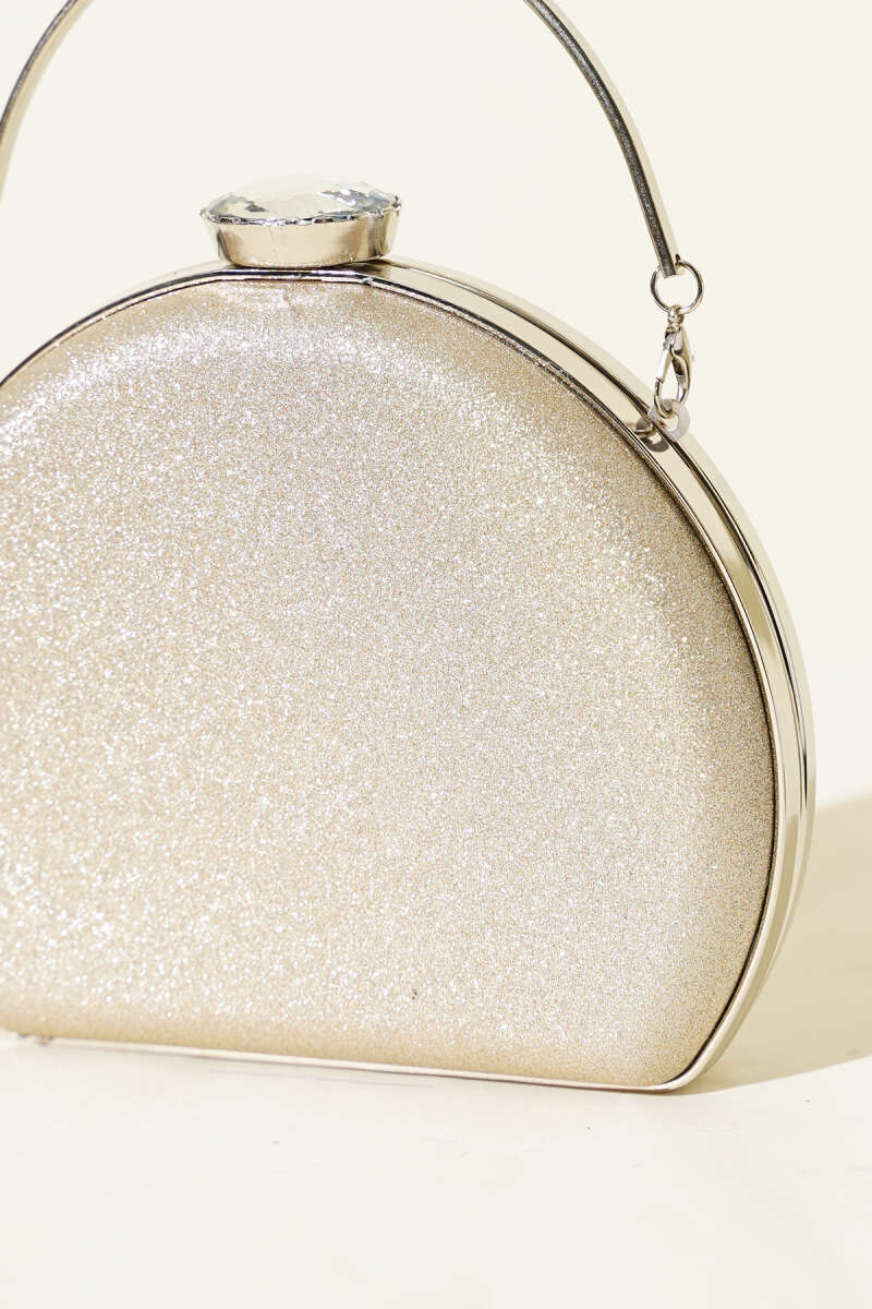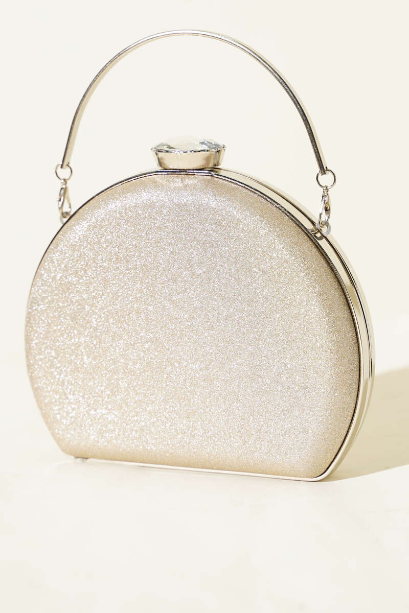 Simli Yarım Ay Model Kadın Abiye Çanta Gümüş