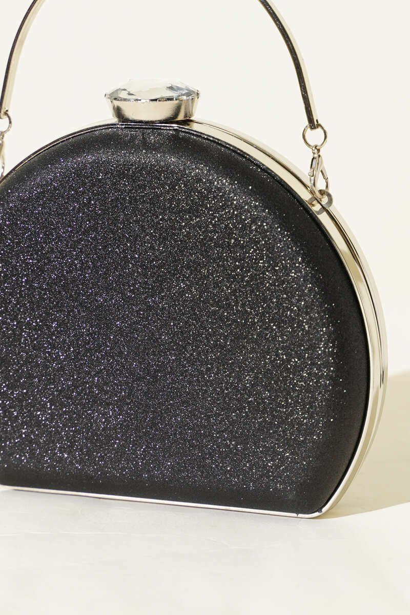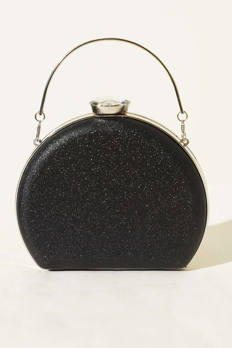 Simli Yarım Ay Model Kadın Abiye Çanta Siyah