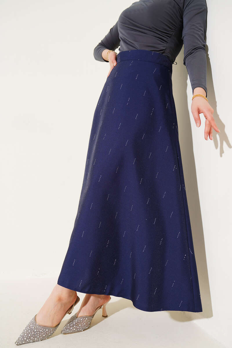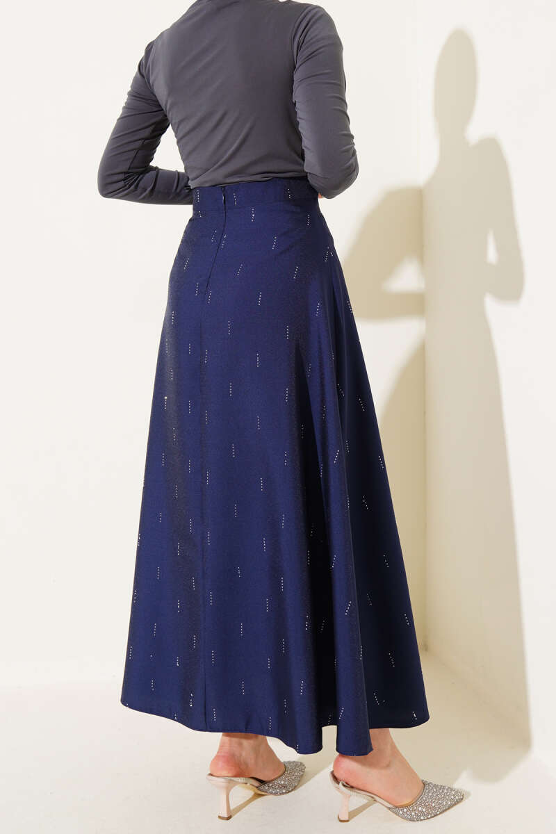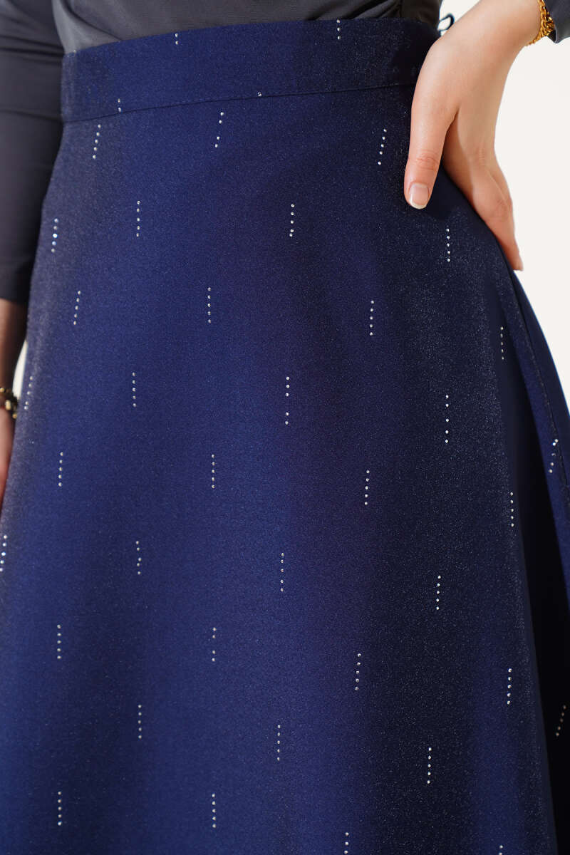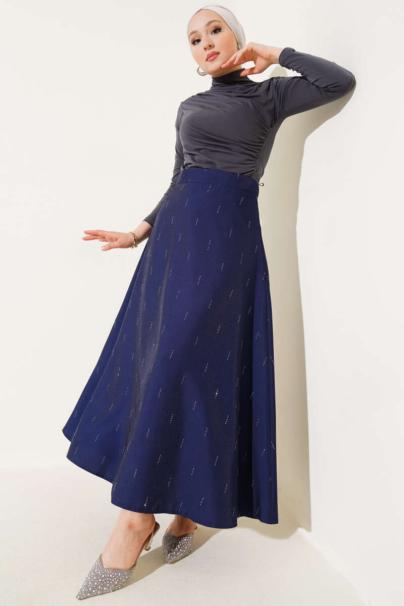 Fırfırlı Pileli Bel Lastikli Etek Lacivert