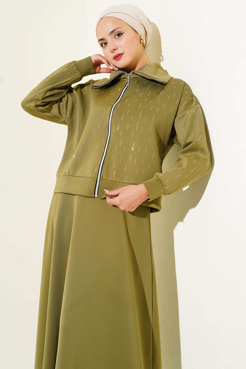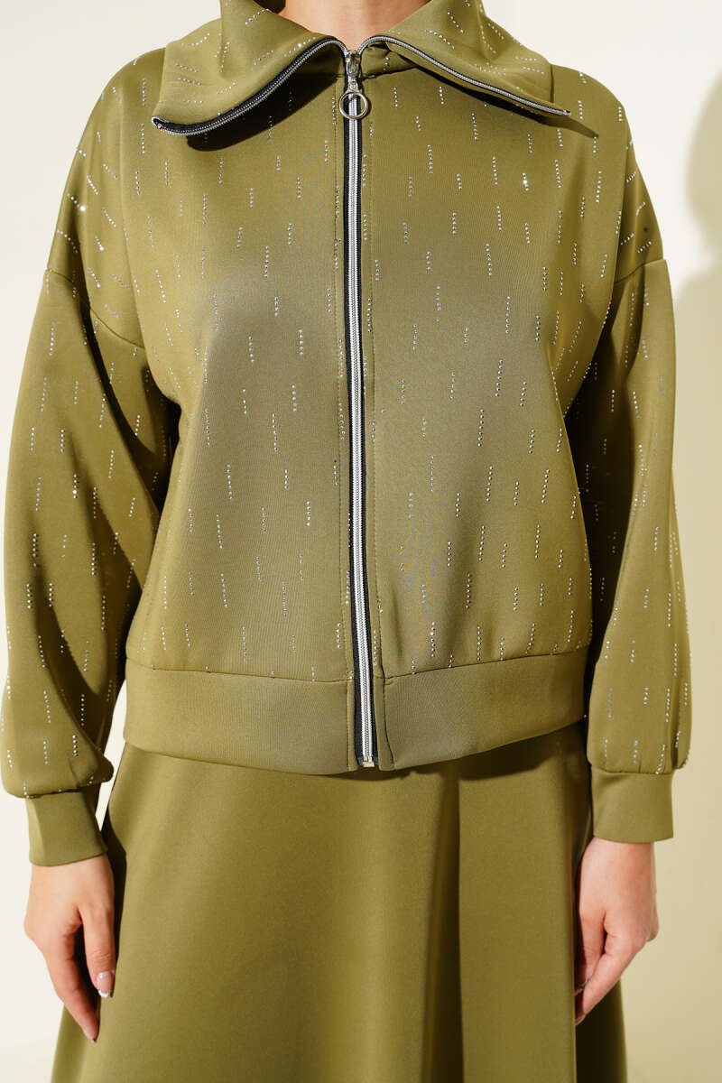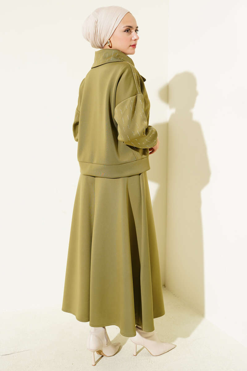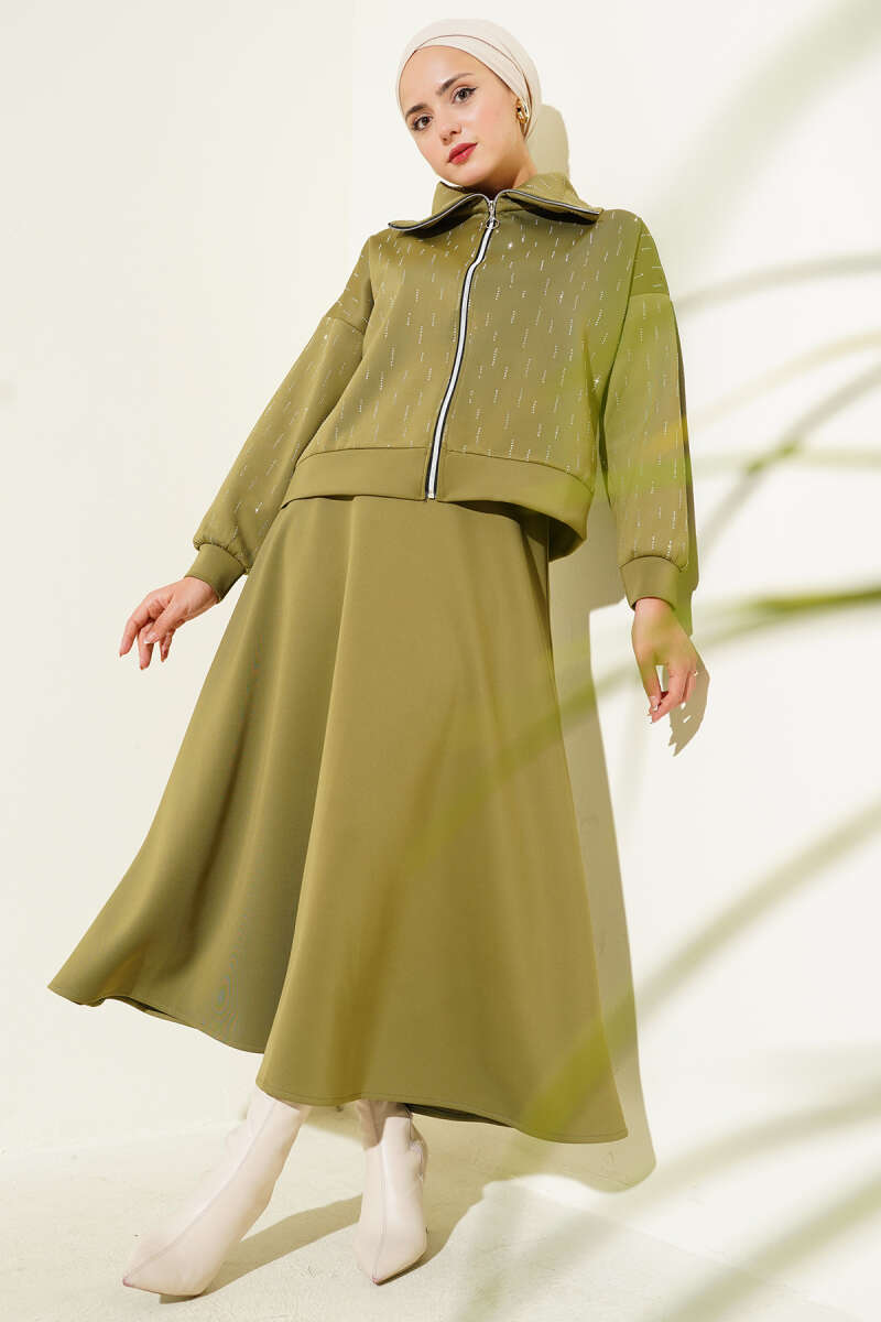 Fırfır Detaylı Bel Lastikli İkili Takım Haki