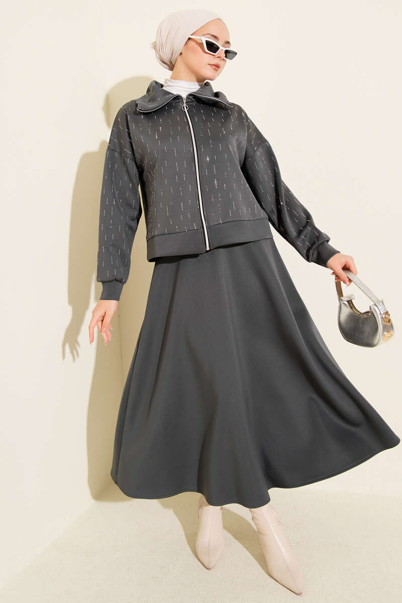 Kabartma Şeritli Taşlı Triko İkili Takım Taş