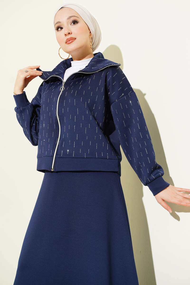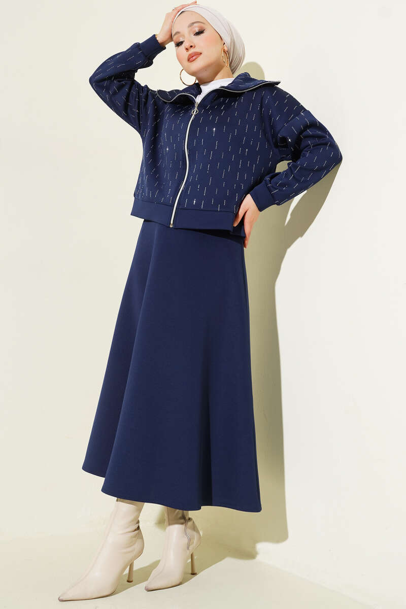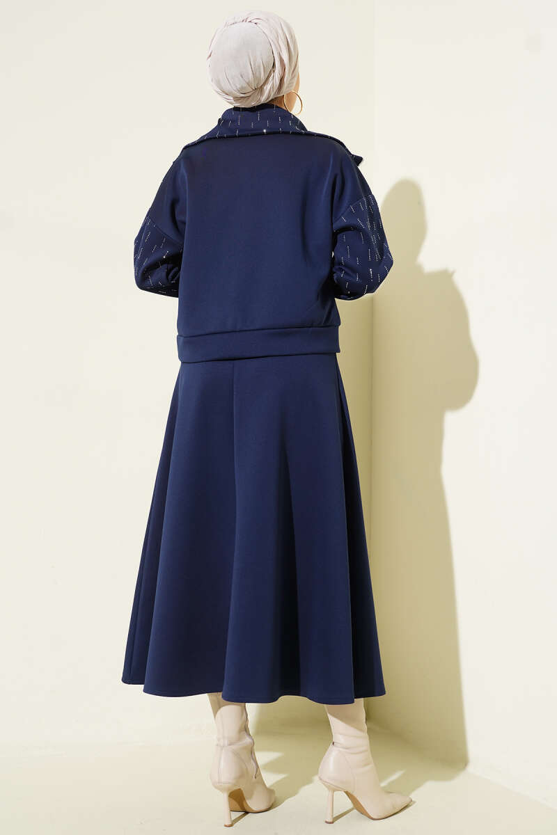 Fırfır Süslemeli Etekli İkili Takım Lacivert