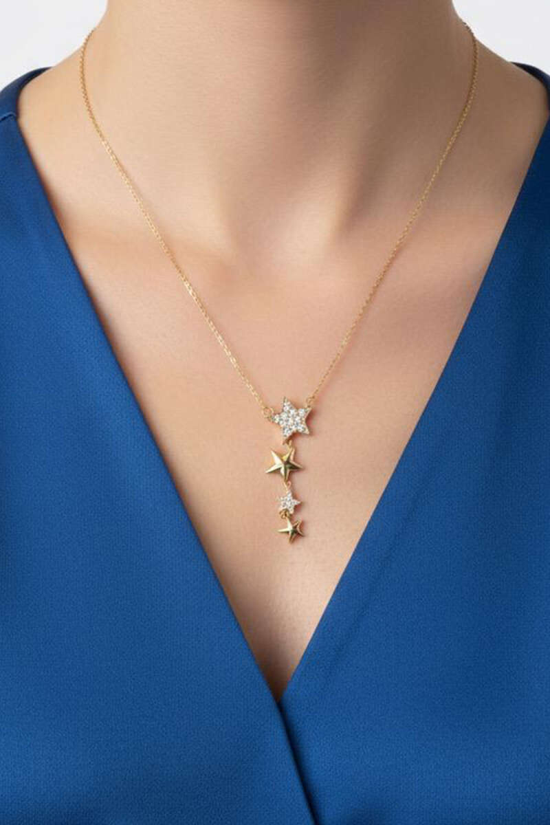 Pazarium kalite ve güvencesiyle beğenilerinize sunulan Sıra Yıldızlı Taşlı Kolye, oldukça uygun bir aksesuar. Farklı kombinler ile kolaylıkla uyum sağlayacak olan Sıra Yıldızlı Taşlı Kolye, kaliteli ve dayanıklı malzemesi ile uzun yıllar en şık kıyafetlerinizi mükemmel bir şekilde tamamlayacak!​​
