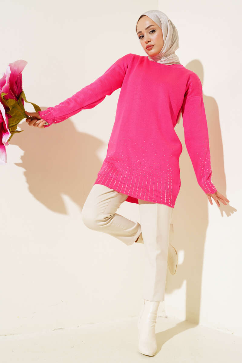 Basic Oversize Triko Tunik Pudra