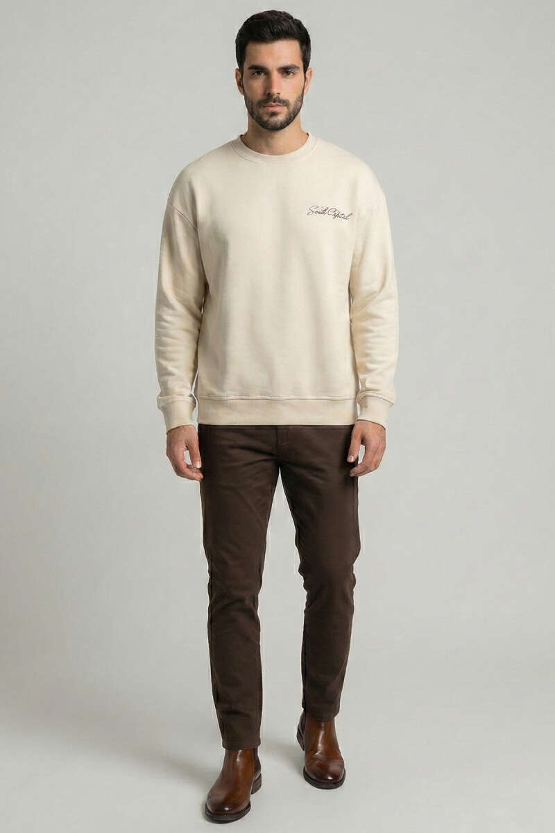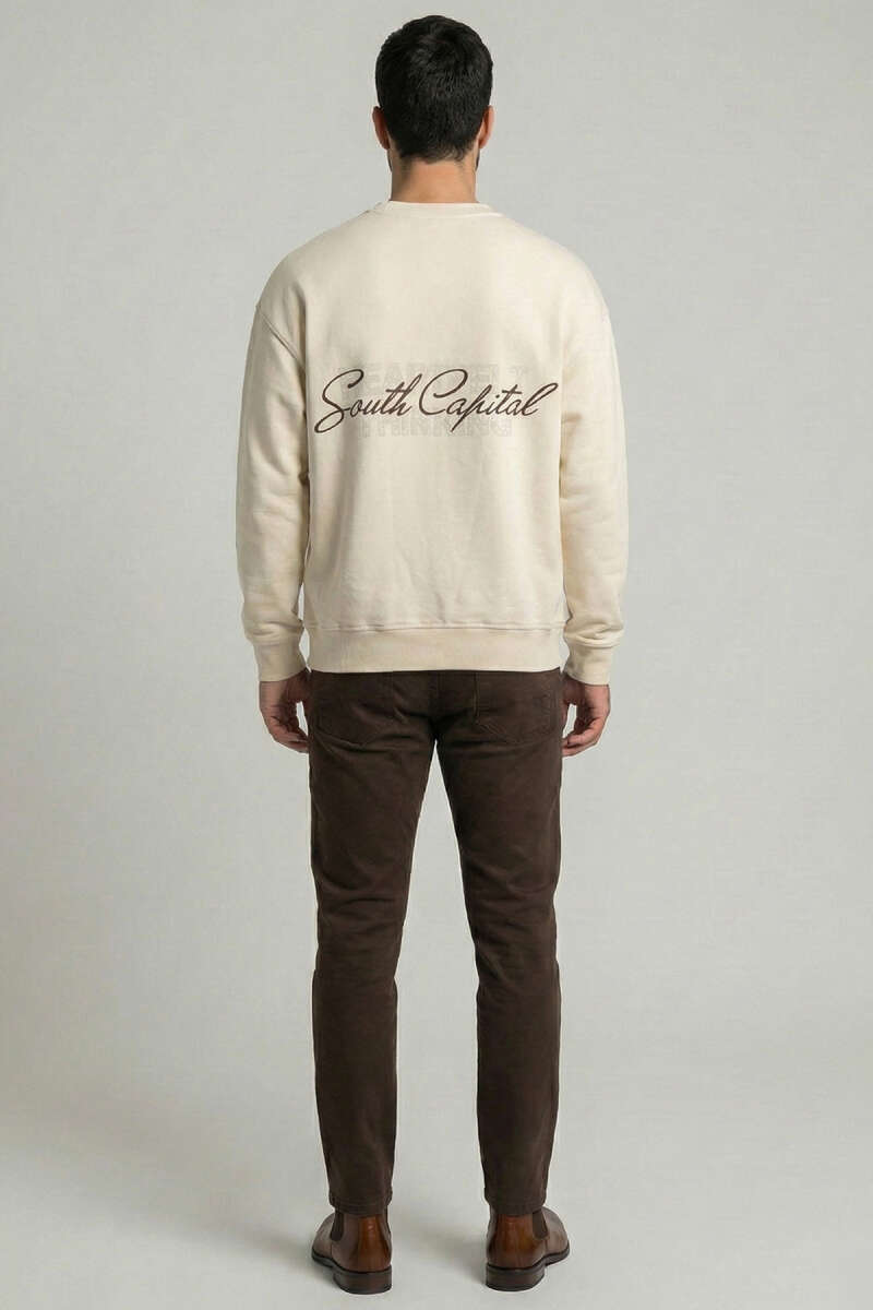 Sırt Baskılı Erkek Sweatshirt Krem