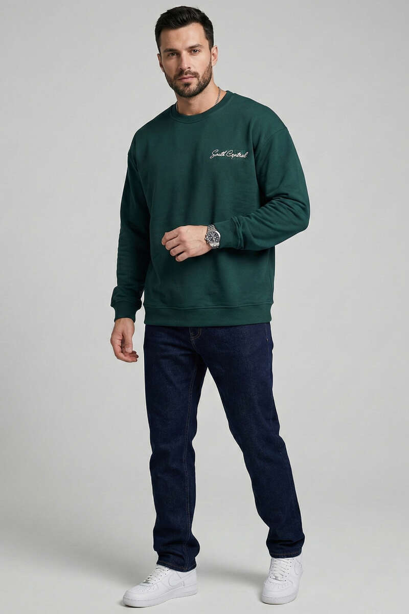 Gömlek Yaka Üç İplik Erkek Sweatshirt Zümrüt