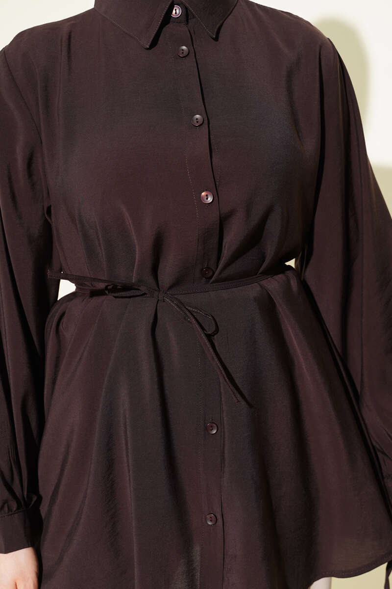 Sırt Dantelli İpli Tensel Gömlek Acı Kahve