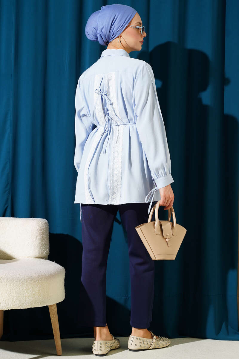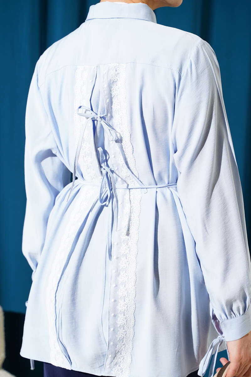 Sırt Dantelli İpli Tensel Gömlek Beyaz