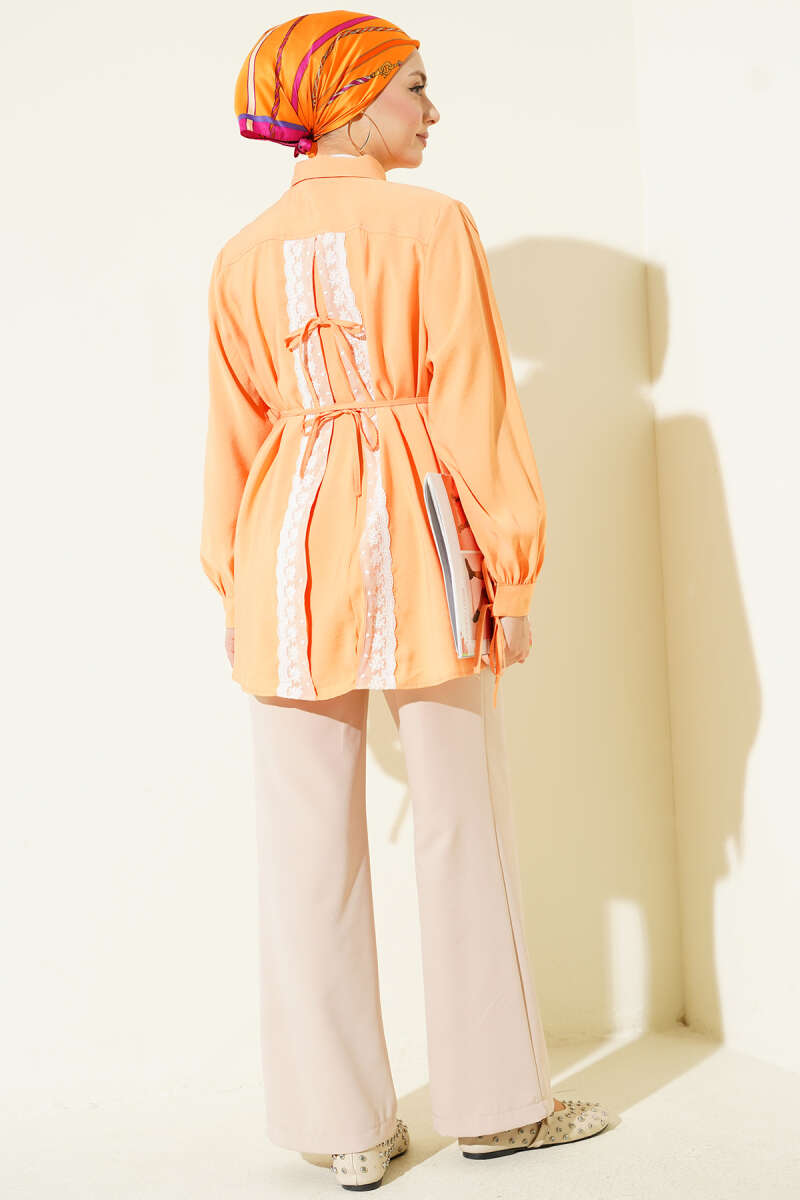 Sırt Dantelli İpli Tensel Gömlek Oranj