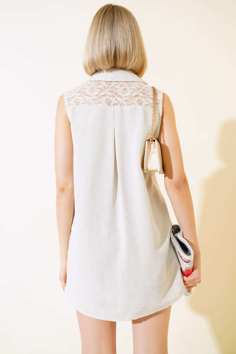 Yeni sezon sırt dantelli keten bluzumuz sizlerle beraber. Bluzumuzun önü kısa arkası uzundur. Arkasındaki dantel detayları ayrı bir hava katmıştır. Bluzumuz sıfır koldur. V yakadır. Yazın favori parçası olacaktır. Dolabınızdaki yerini bekliyor.
