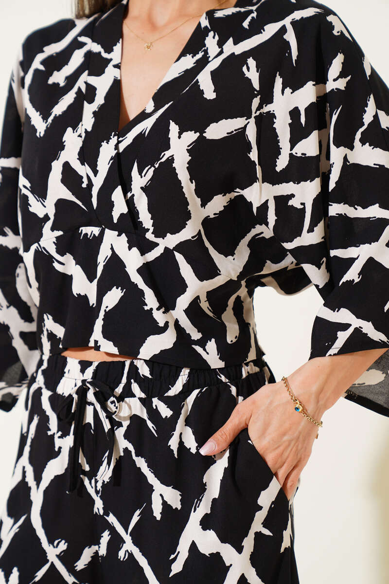 Sırt İp Detaylı Crop İkili Takım Siyah