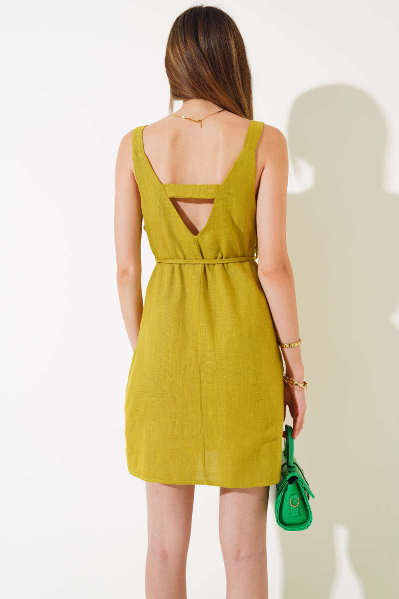 Çizgili Kuşaklı Jile Elbise Lacivert