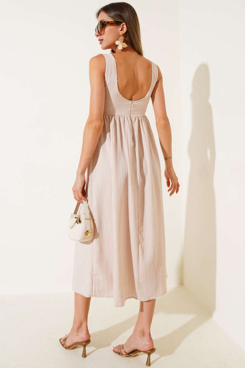 Sırtı U Yaka Elbise Bej