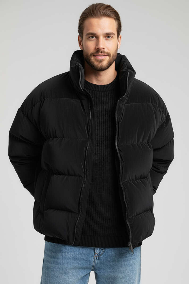 Kaşe Erkek Mont Siyah