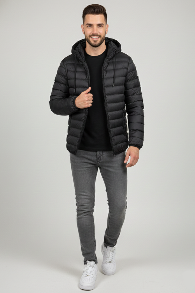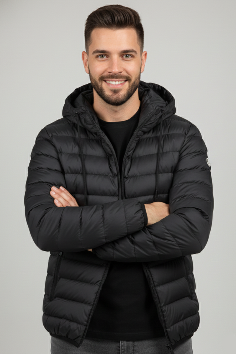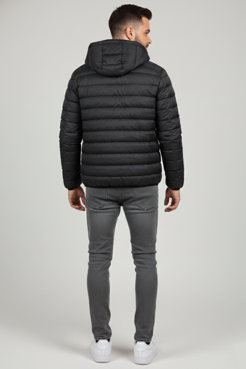 Kapüşonlu Önü Biyeli Erkek Mont Siyah