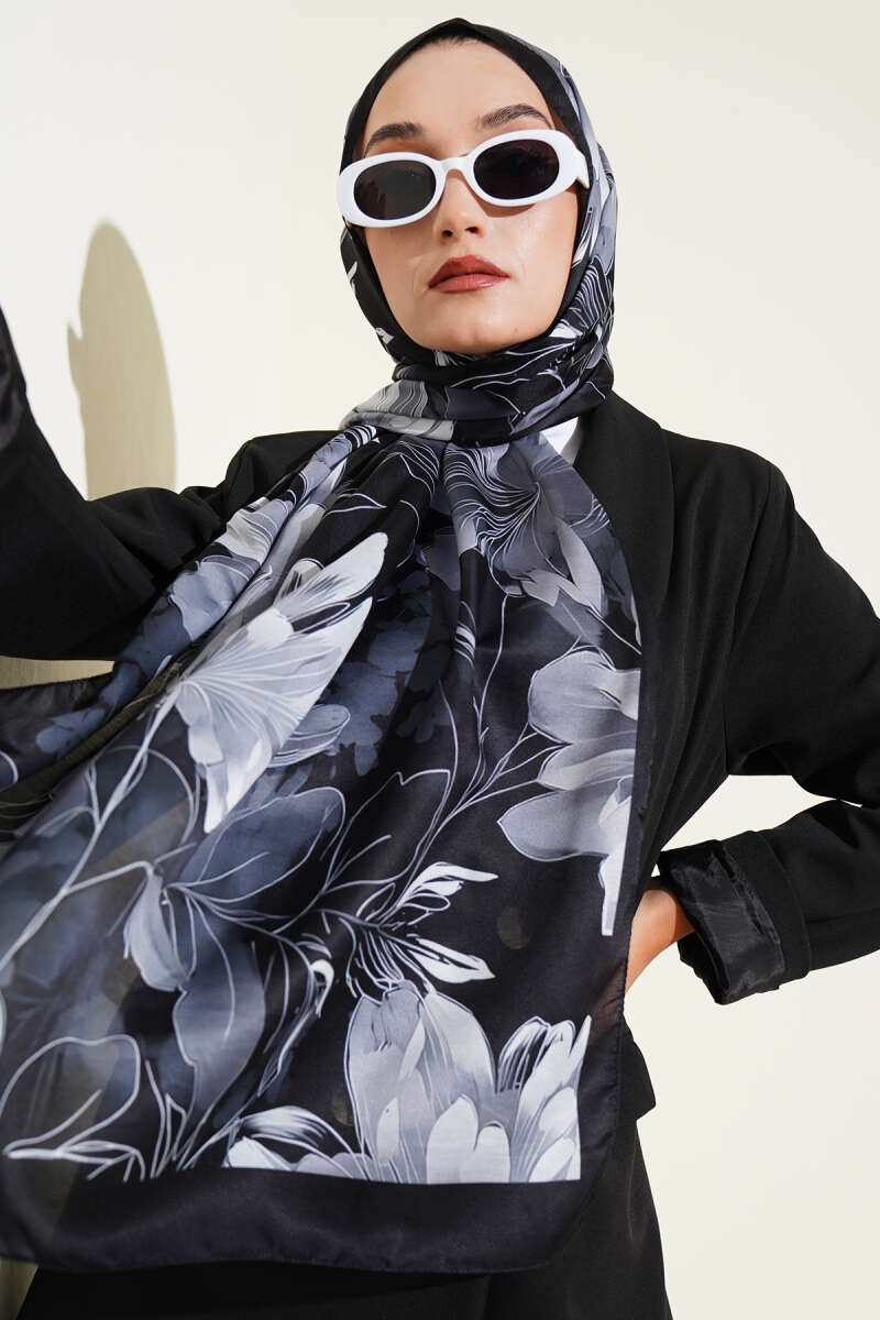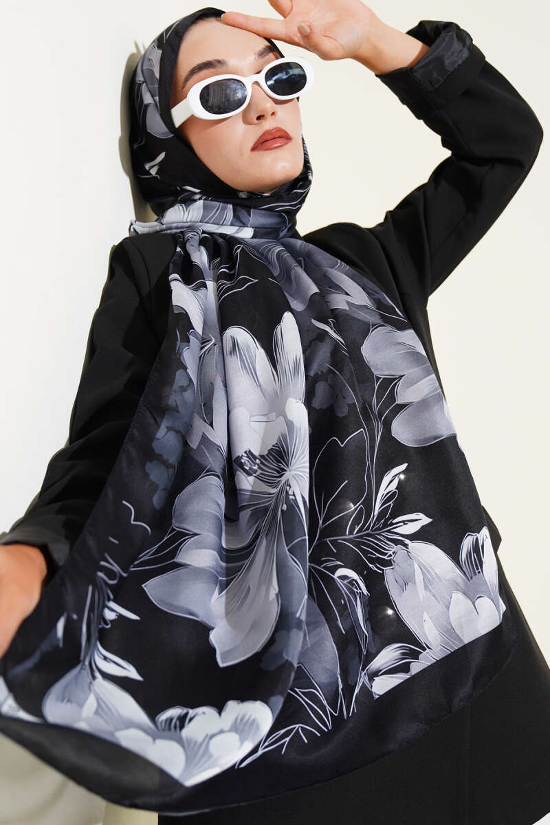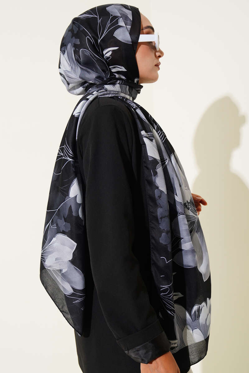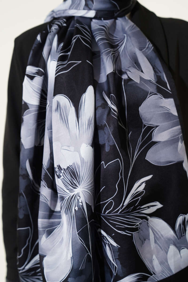 Çiçek Desenli Soft Bambu Kraş Şal Saks