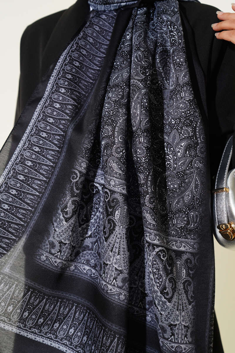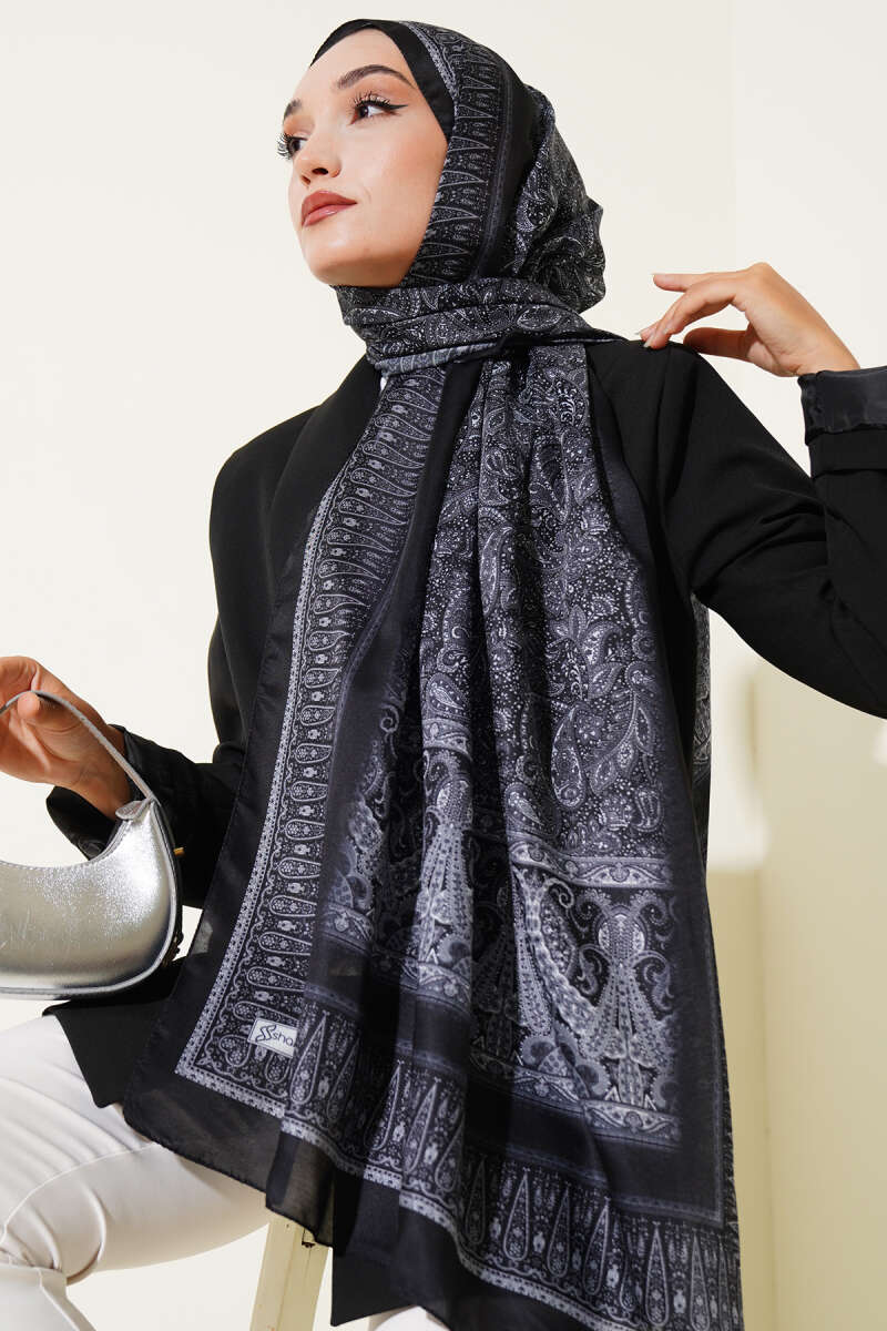 Çiçek Desenli Soft Bambu Kraş Şal Taş
