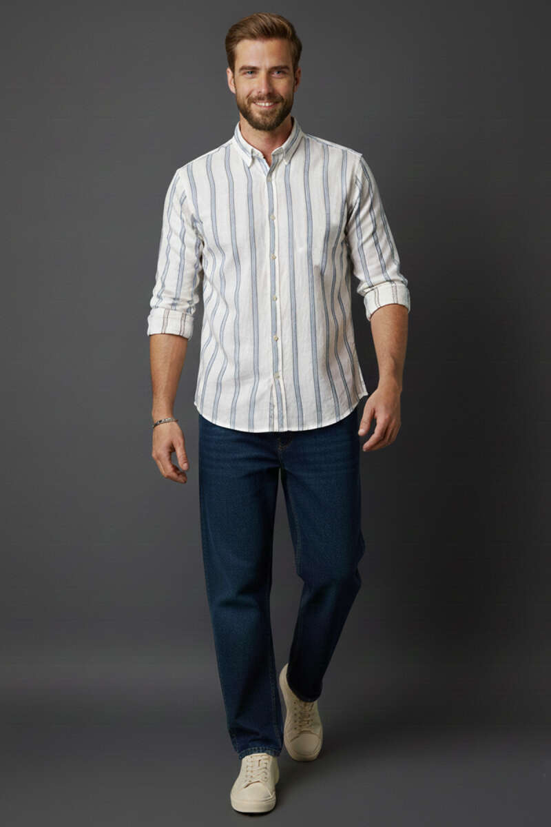 Yaka Düğmeli Erkek Spor Gömlek Beyaz