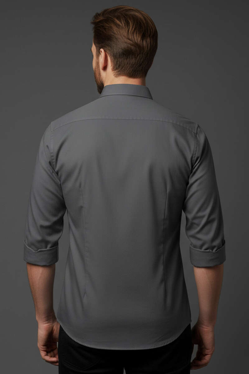 Slim Fit Pamuk Saten Erkek Gömlek Füme