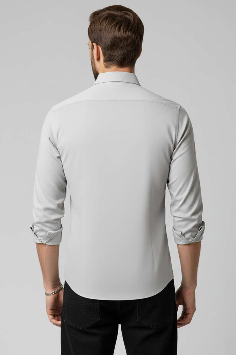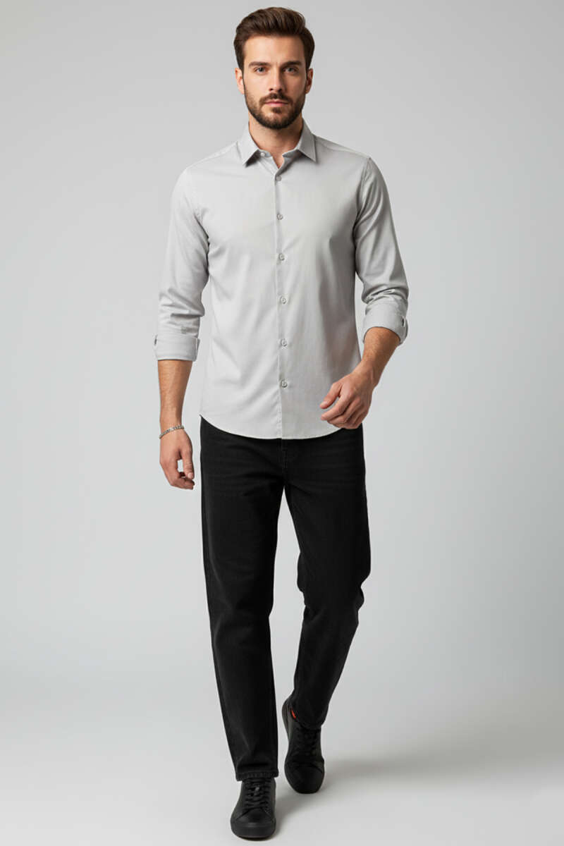 Slim Fit Pamuk Saten Erkek Gömlek Gri