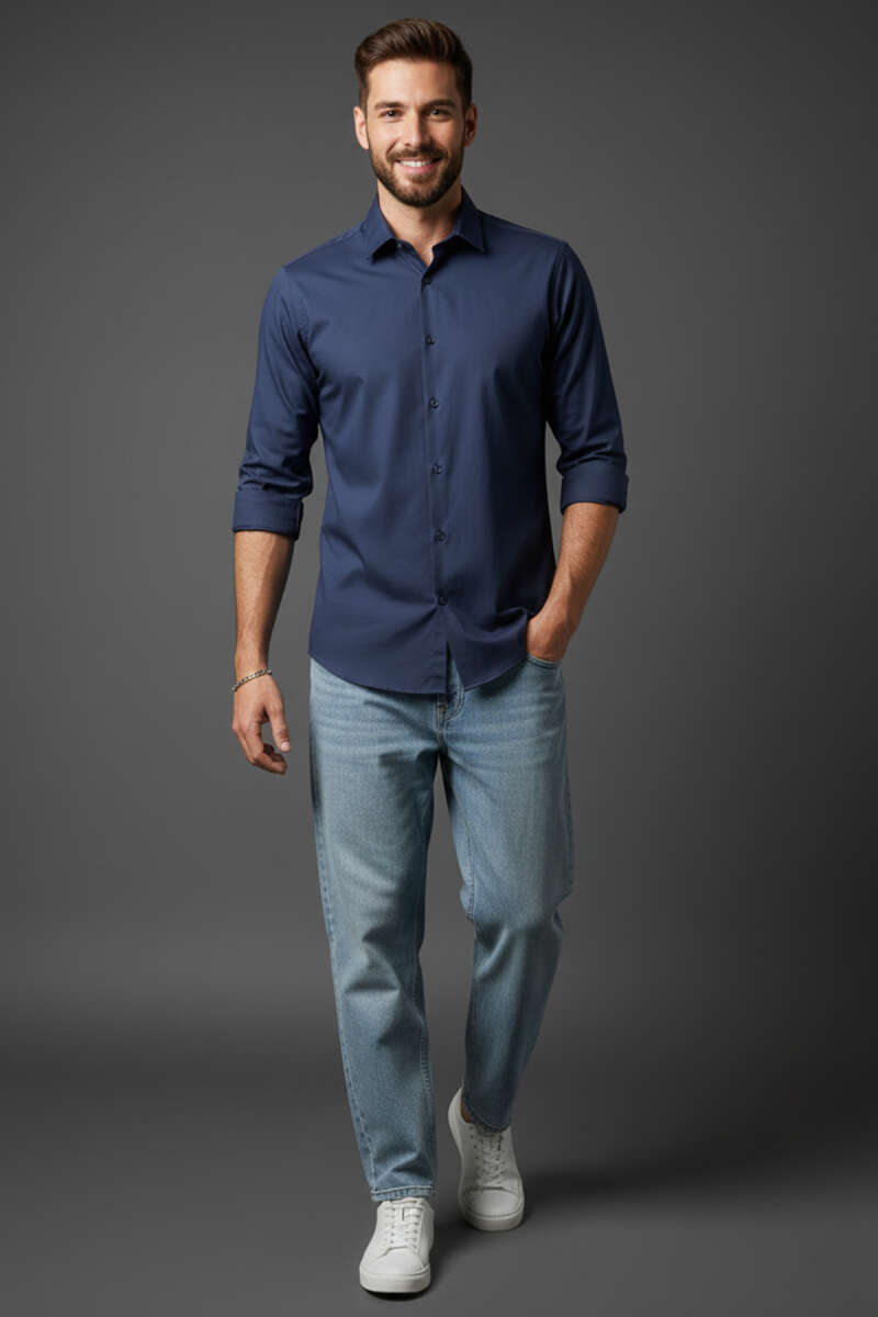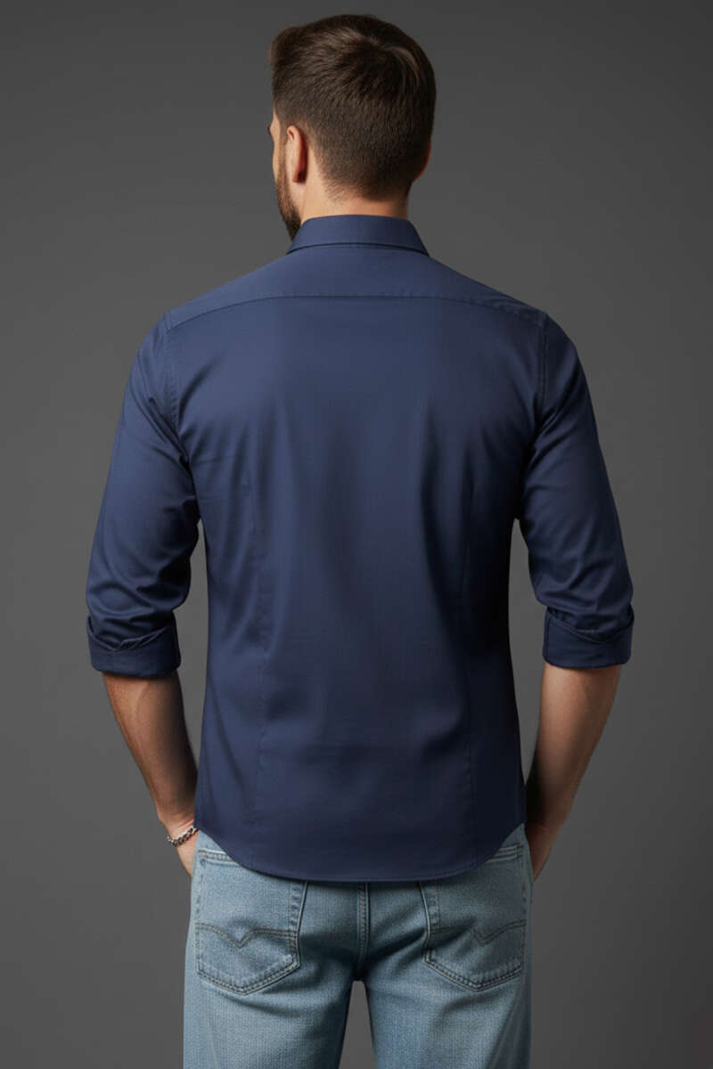 Slim Fit Pamuk Saten Erkek Gömlek Mavi