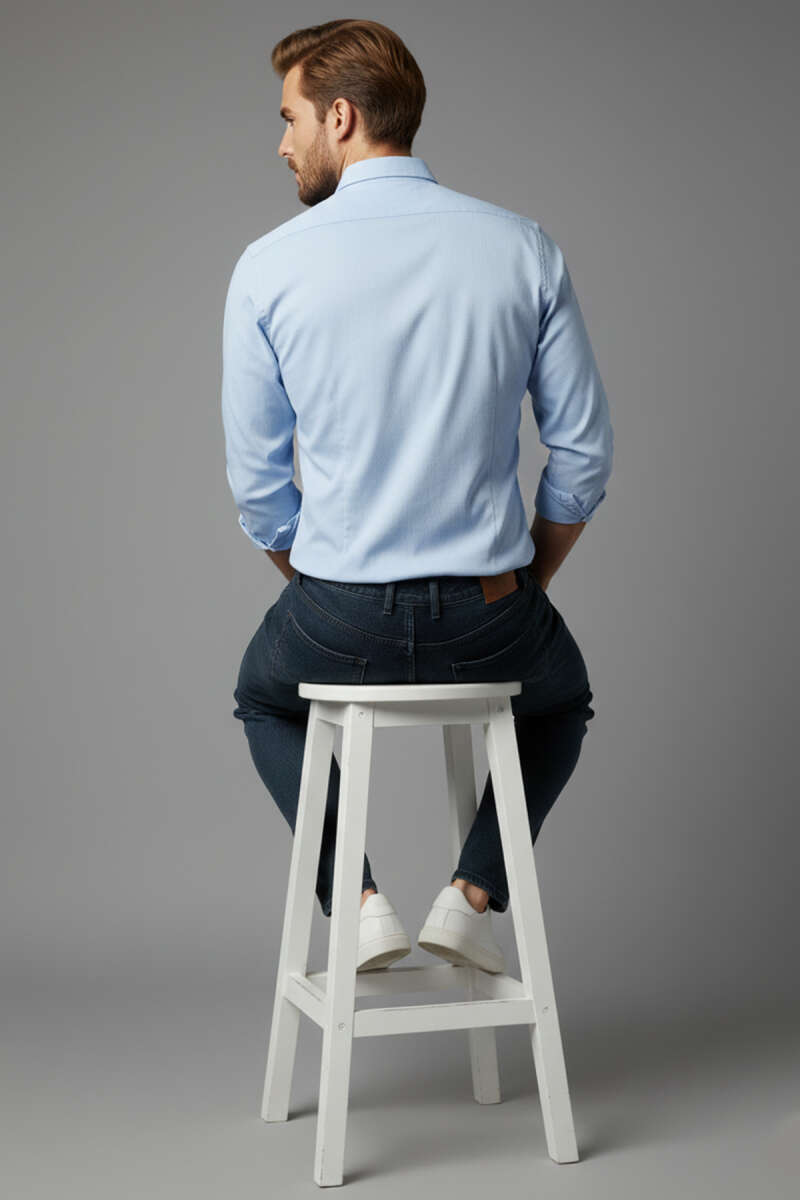 Fitilli Basic Erkek Gömlek Mavi
