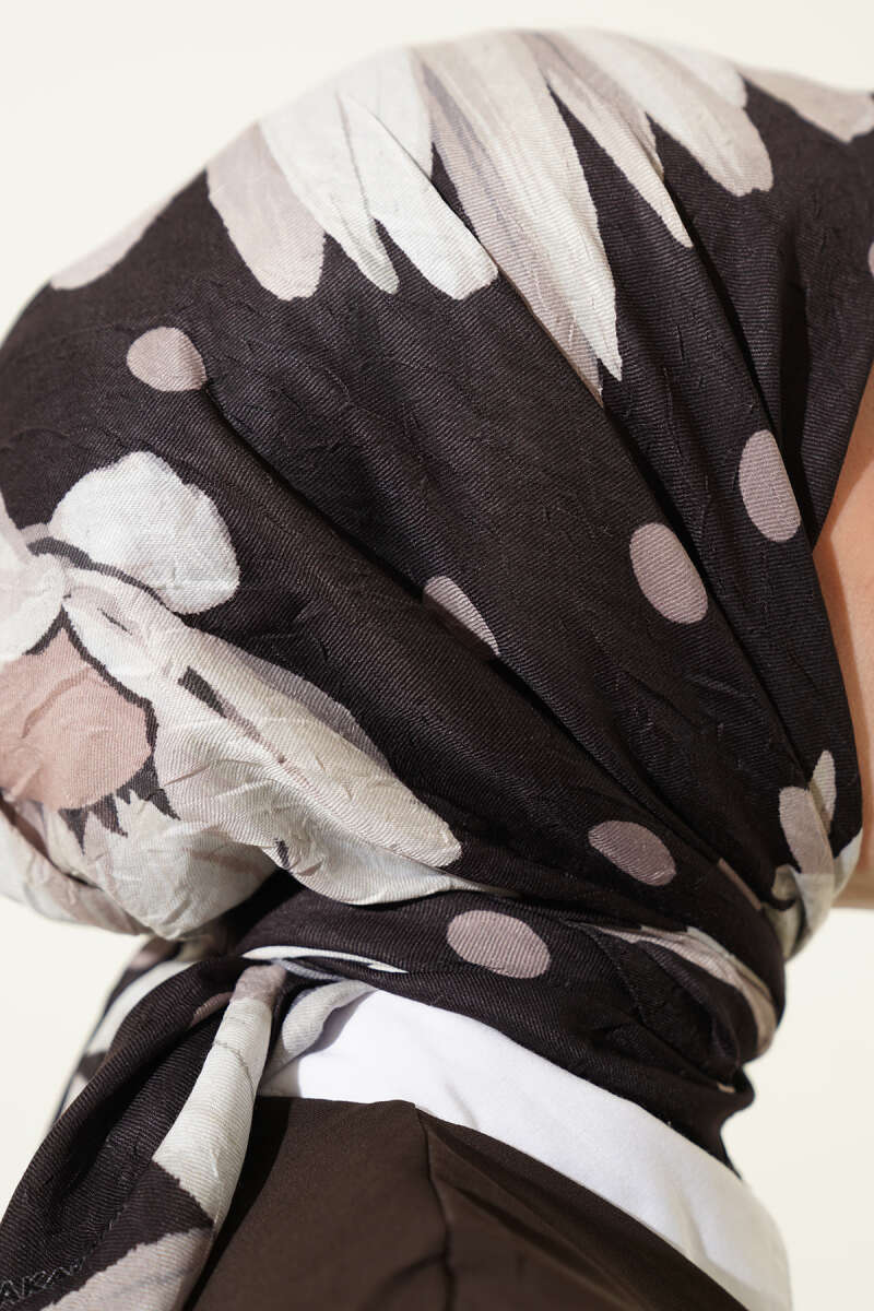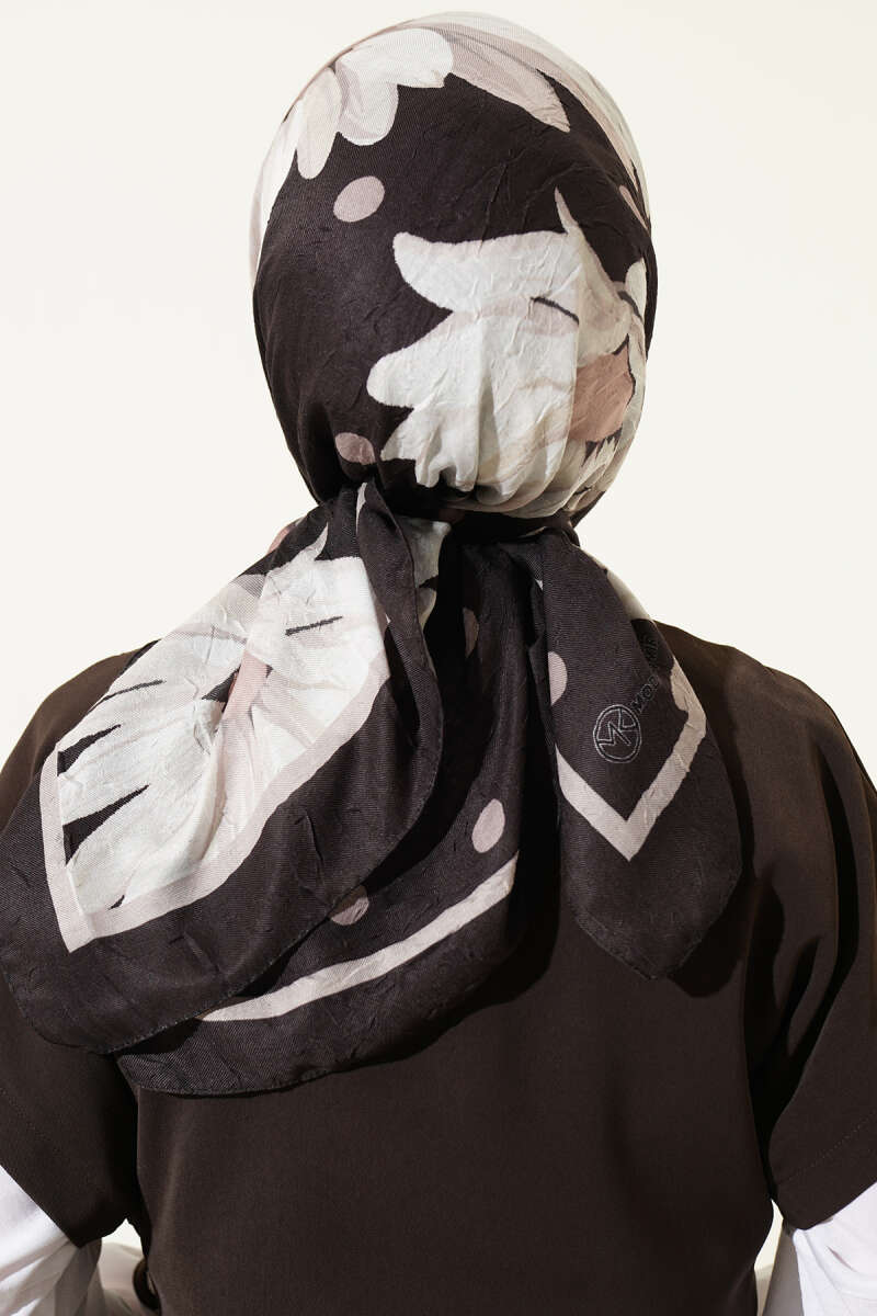 Soft Floral Baskılı Pamuklu Eşarp Acı Kahve
