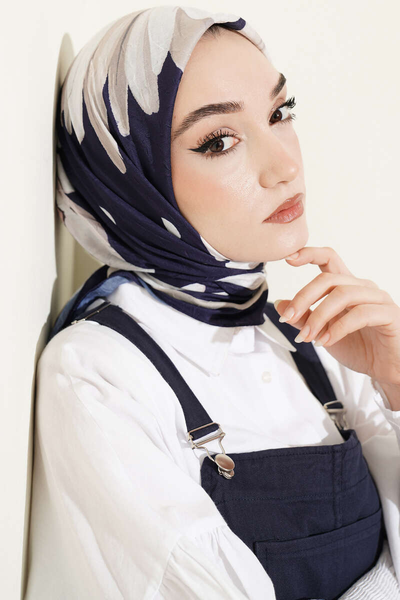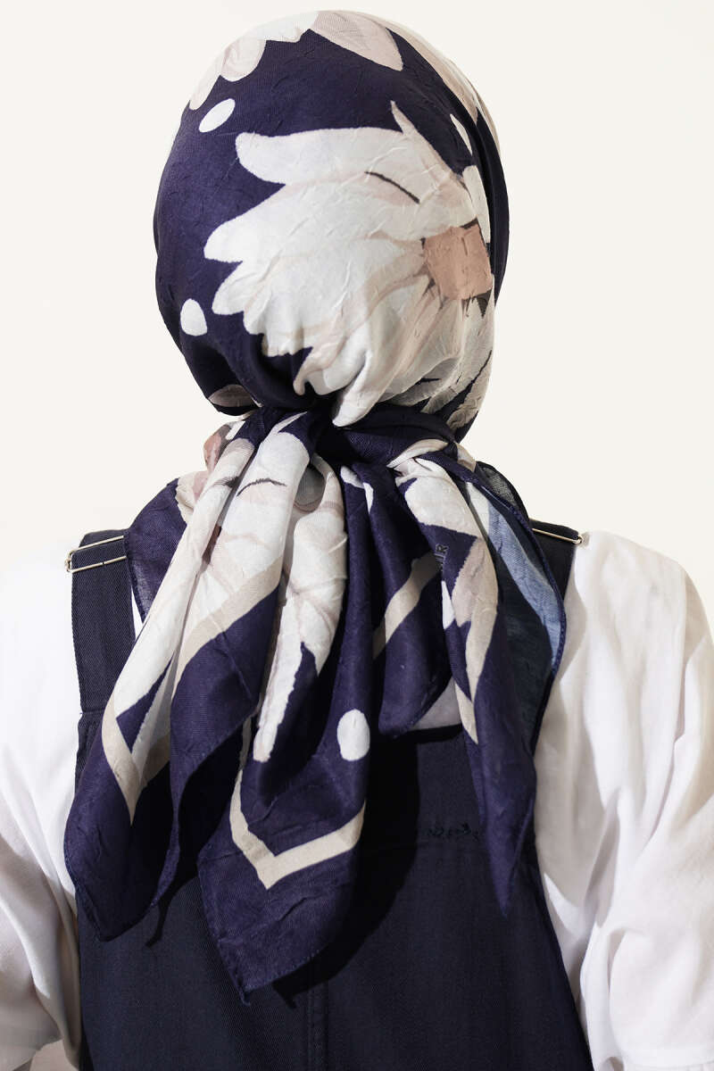 Soft Floral Baskılı Pamuklu Eşarp Lacivert