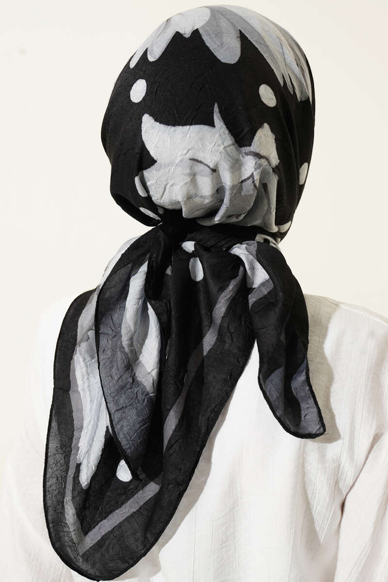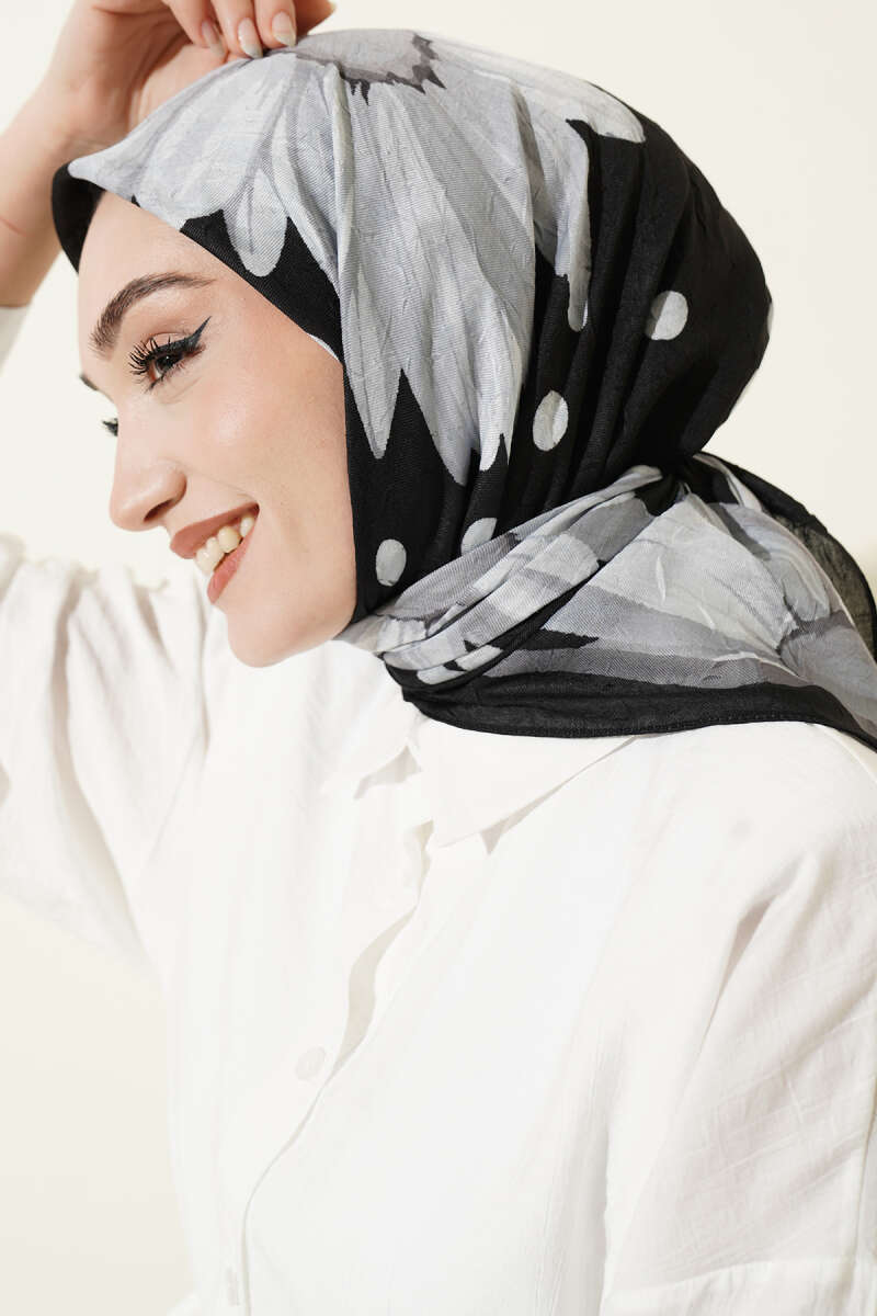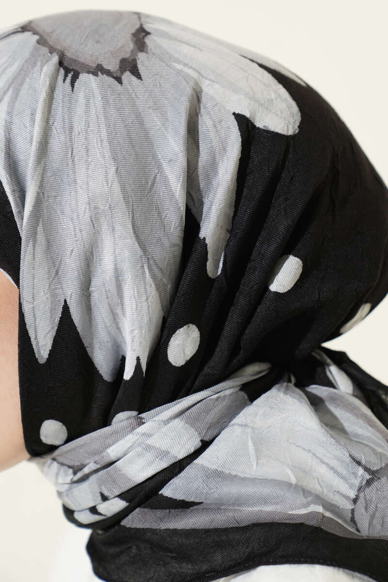 Soft Floral Baskılı Pamuklu Eşarp Siyah