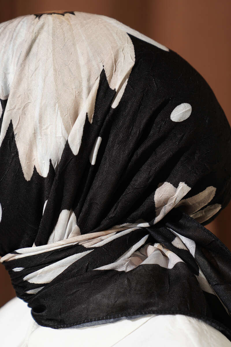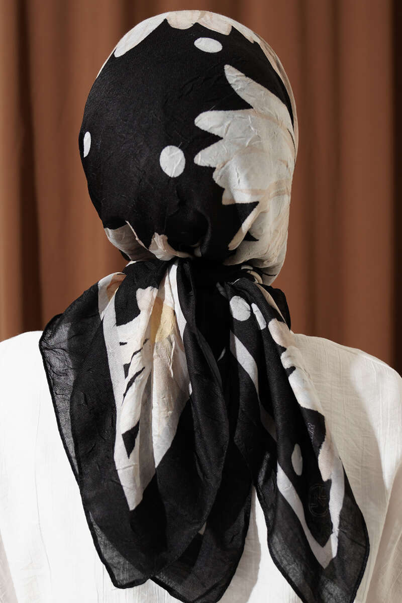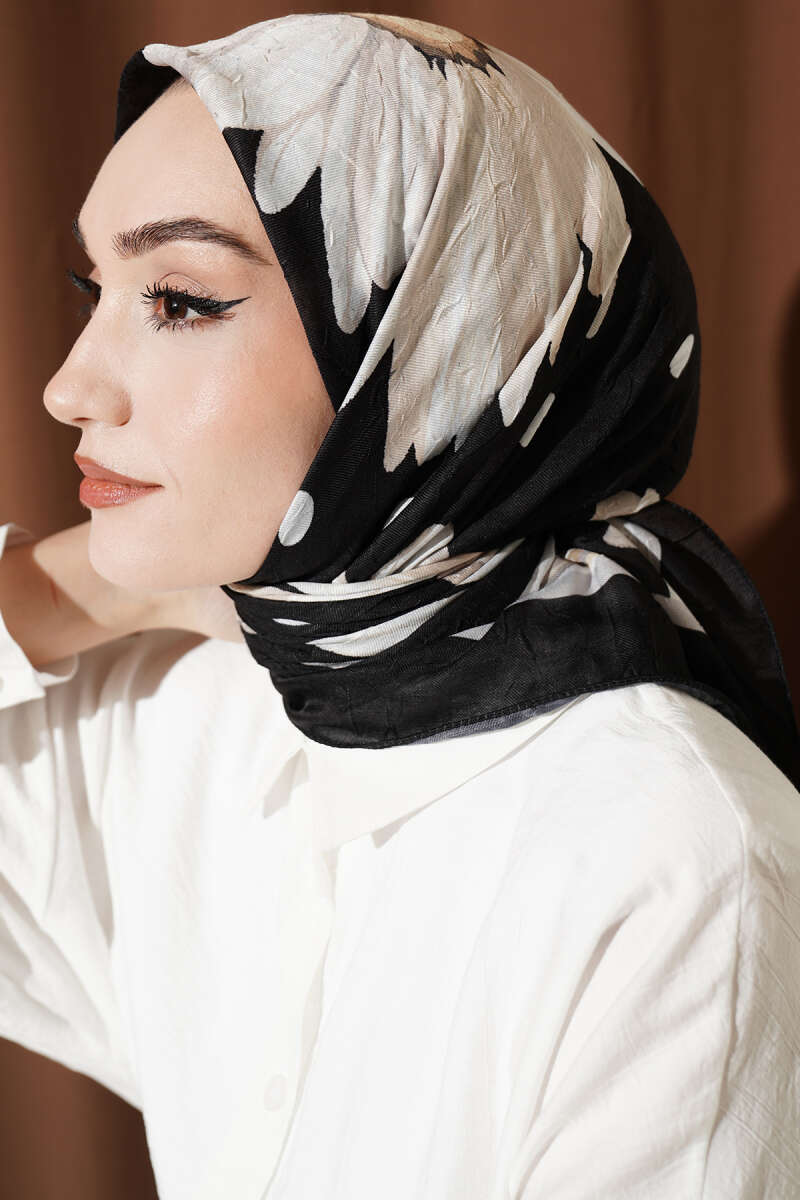 Soft Floral Baskılı Pamuklu Eşarp Siyah Bej