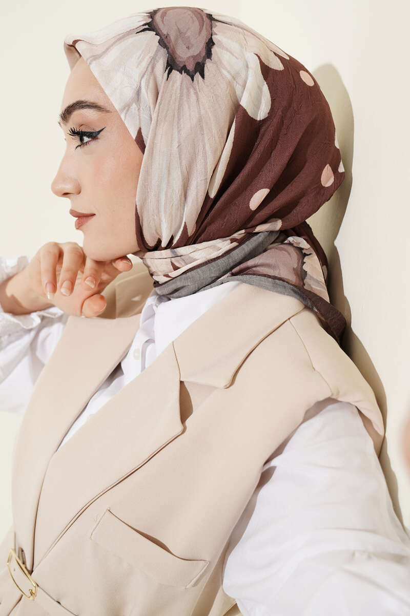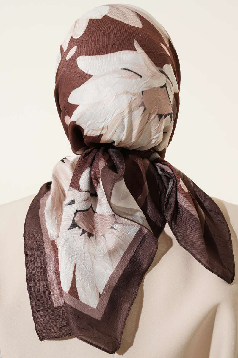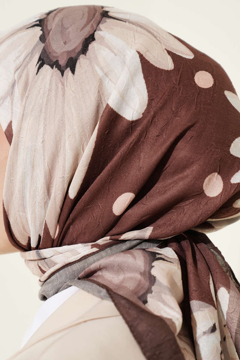 Soft Floral Baskılı Pamuklu Eşarp Sütlü Kahve