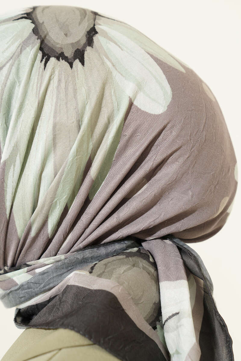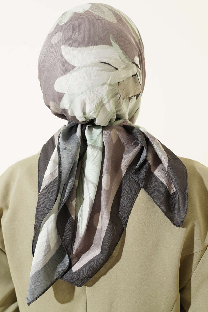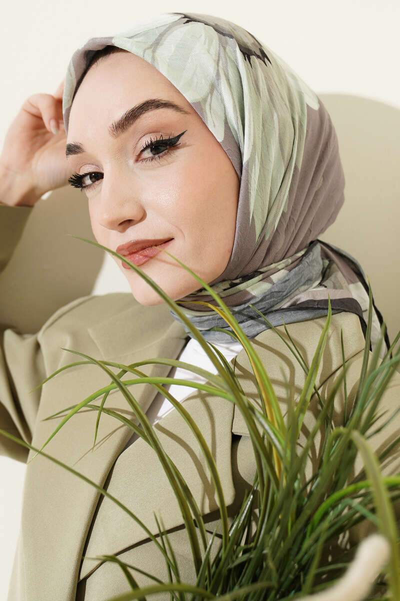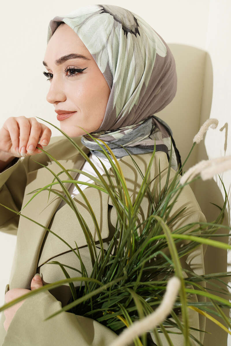 Soft Floral Baskılı Pamuklu Eşarp Vizon
