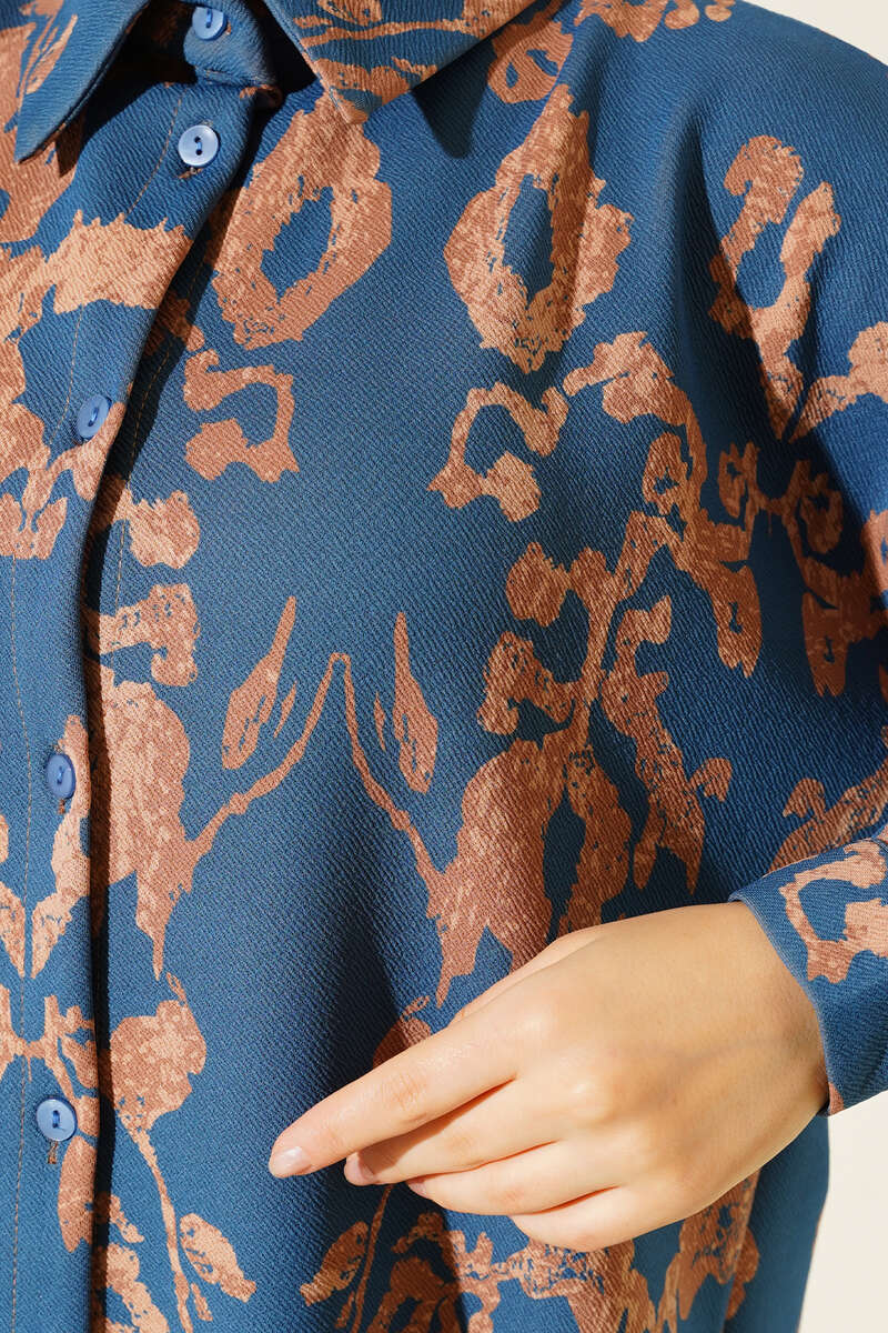 Boydan Düğmeli Tunik İkili Takım İndigo