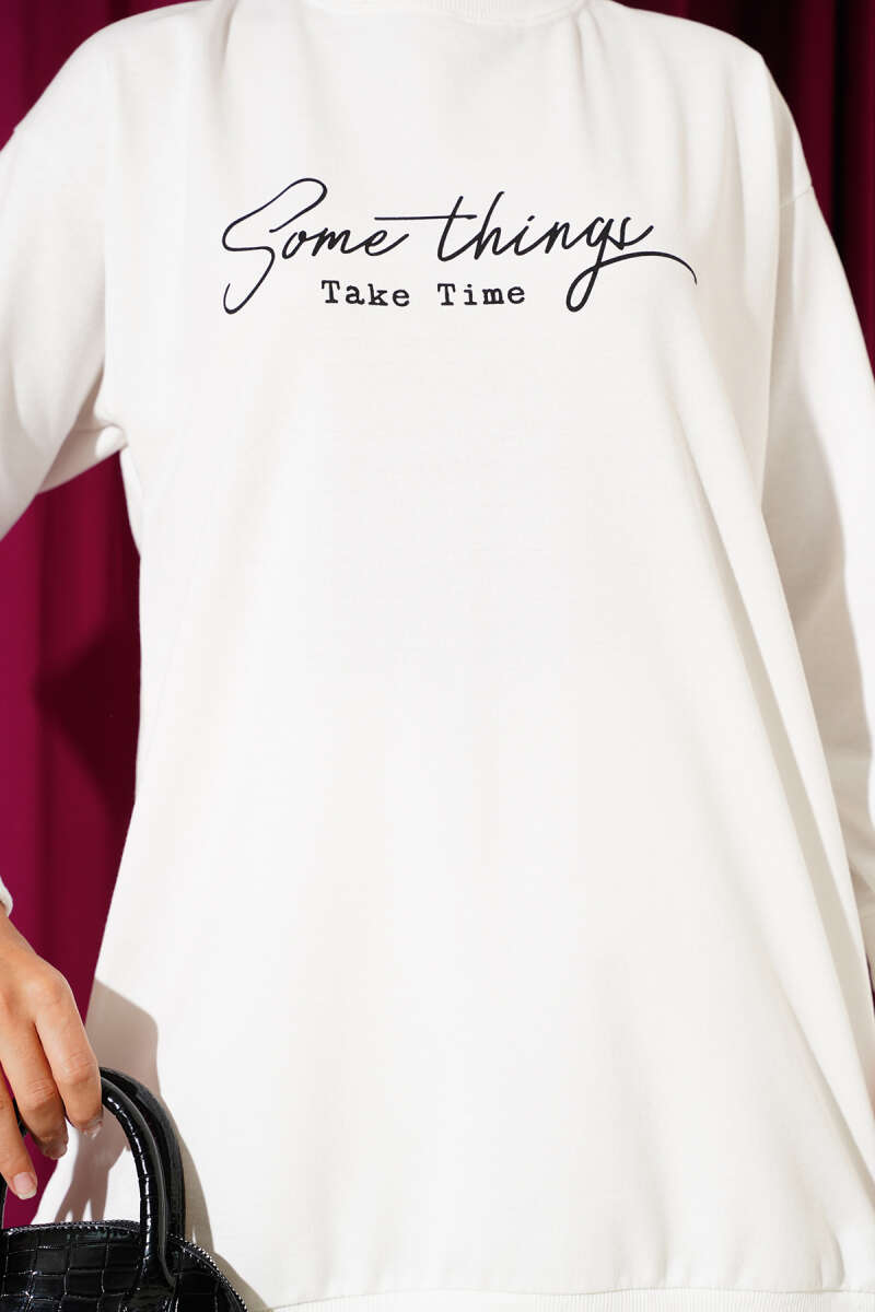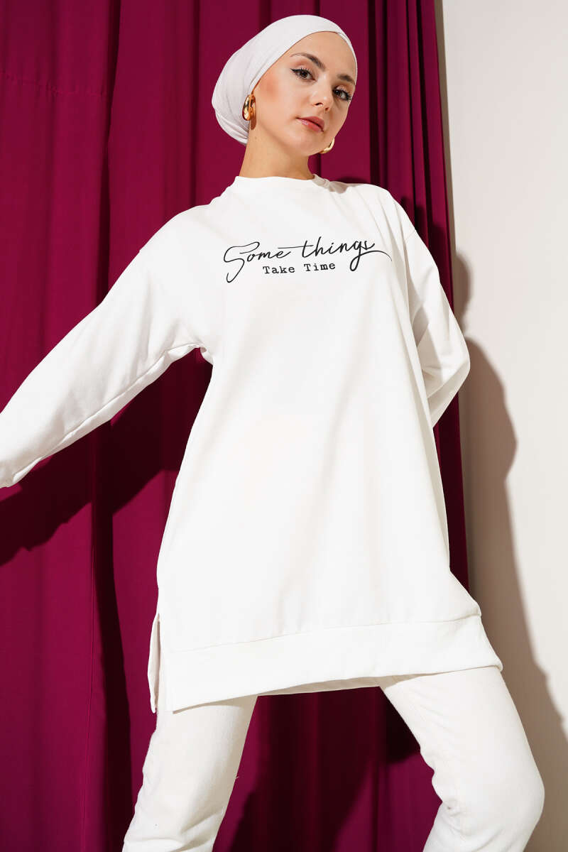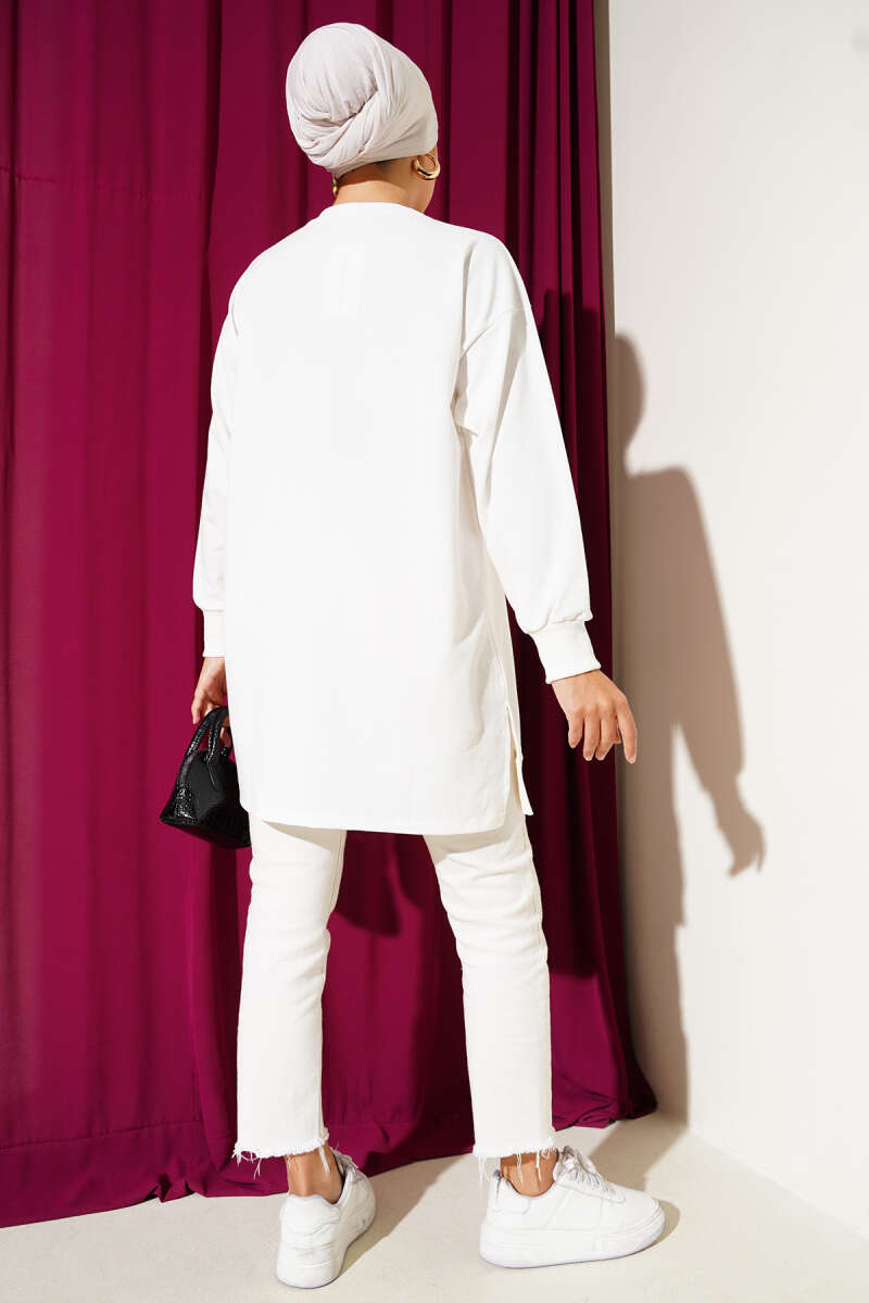 Geniş Bel Lastikli Çımalı Pantolon Beyaz