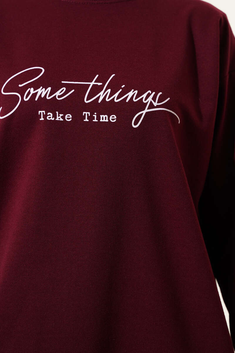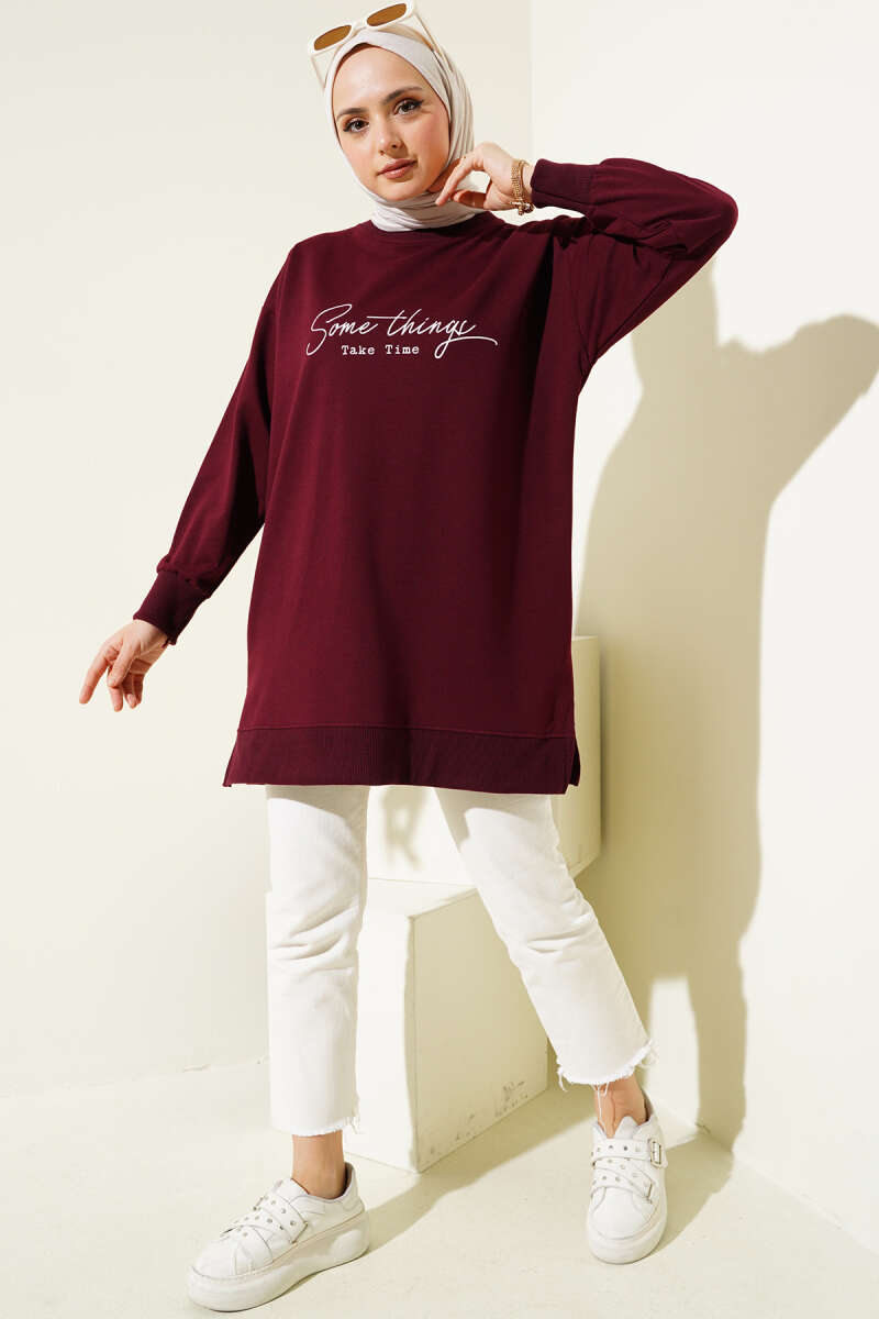 İp Bağlamalı Bisiklet Yaka Tunik Bordo
