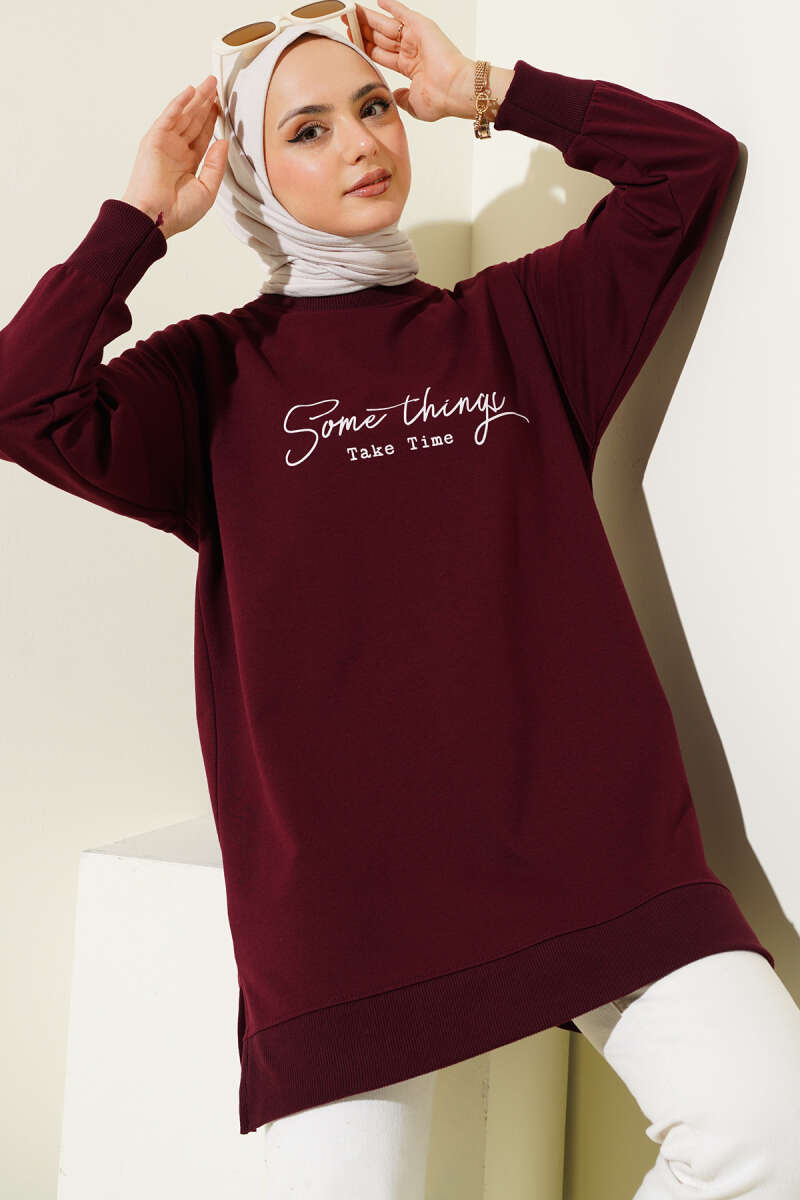 Gömlek Yaka Fularlı Triko Tunik Bordo