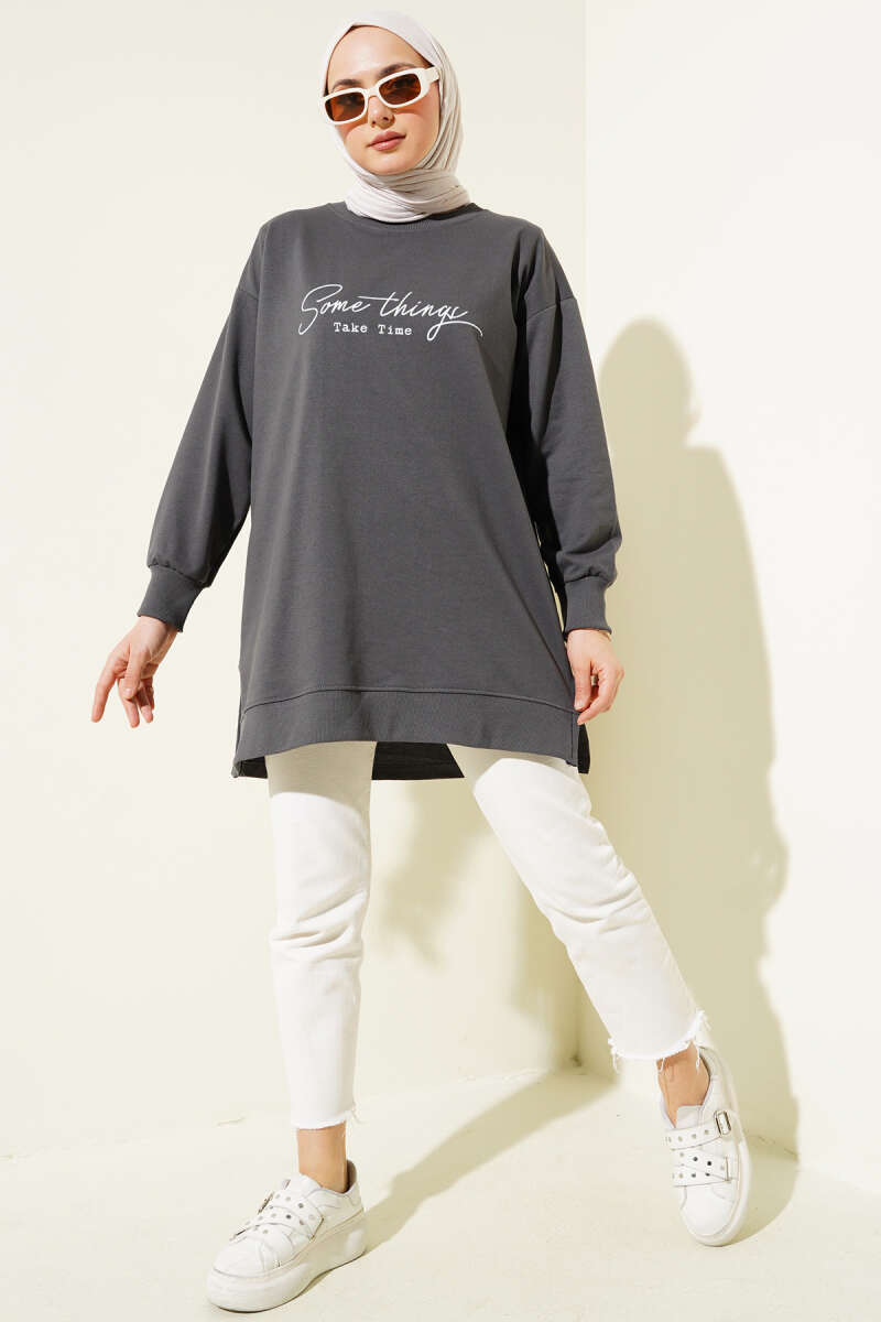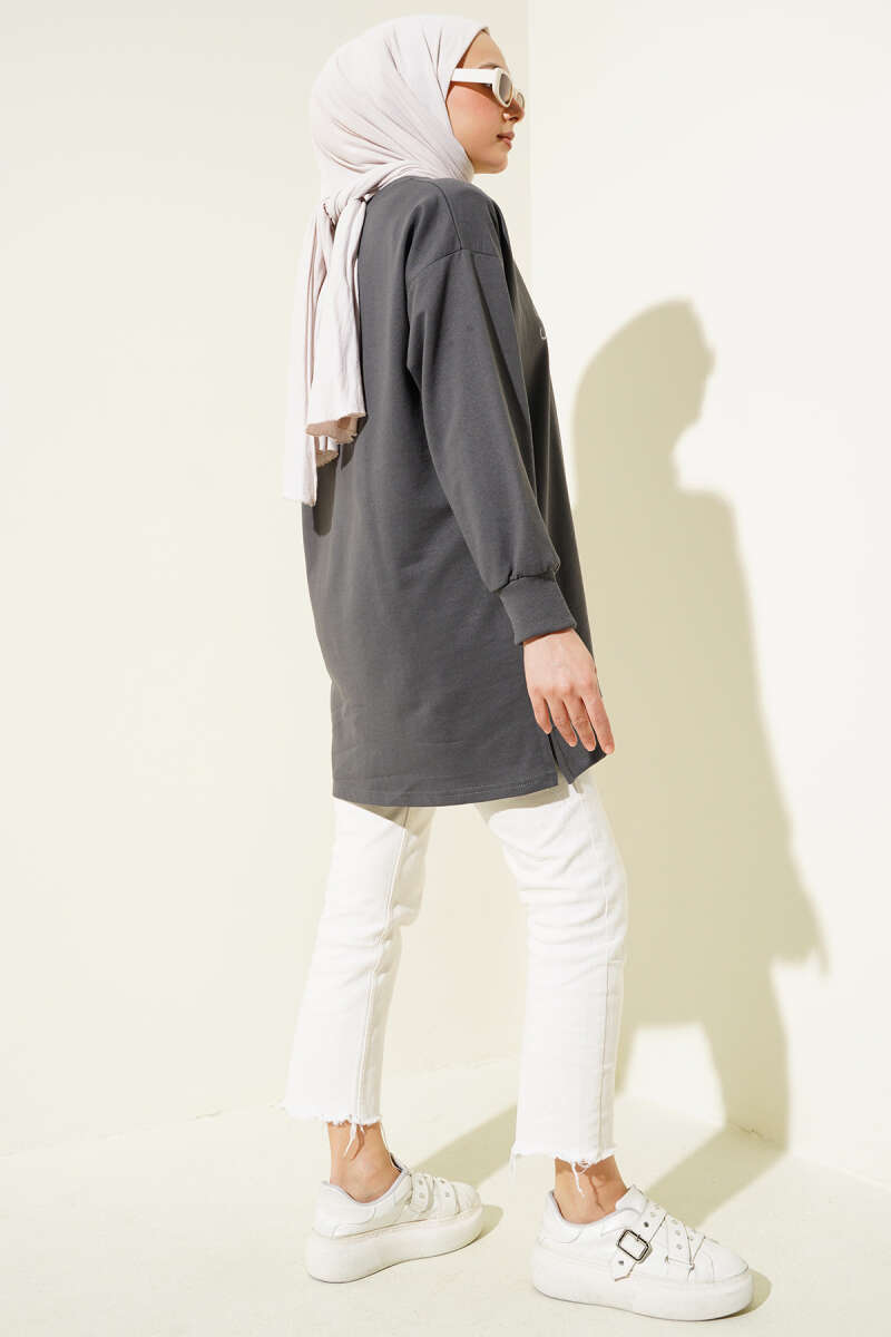 Gömlek Yaka Fularlı Triko Tunik Taş