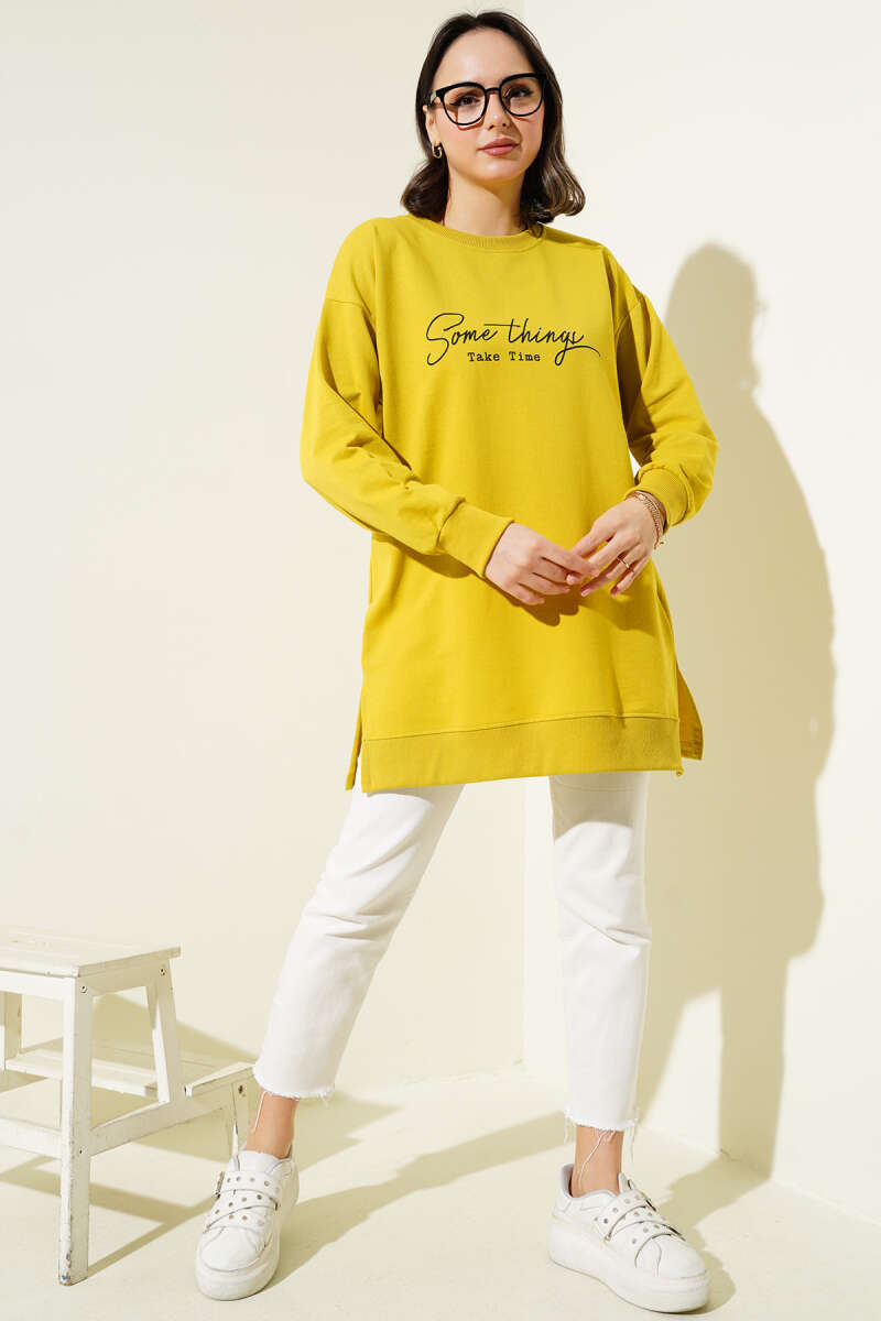 Minik Kalp Nakışlı Tunik Çağla Yeşili
