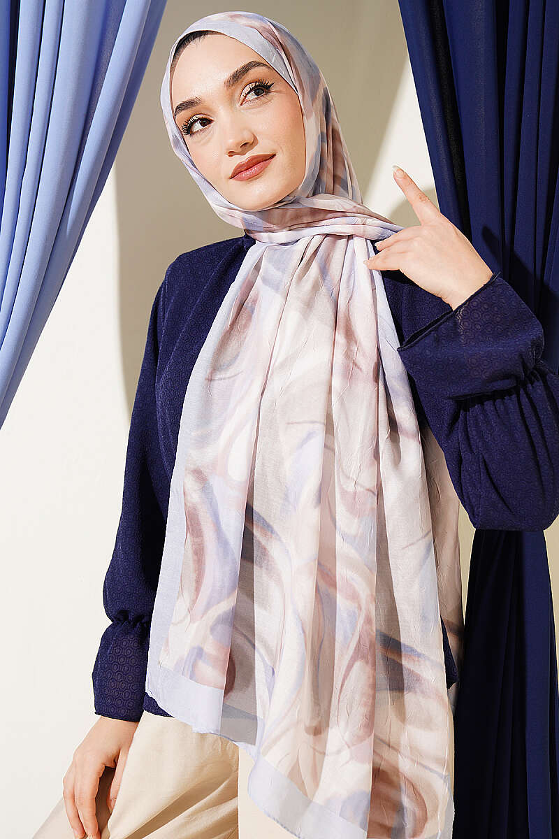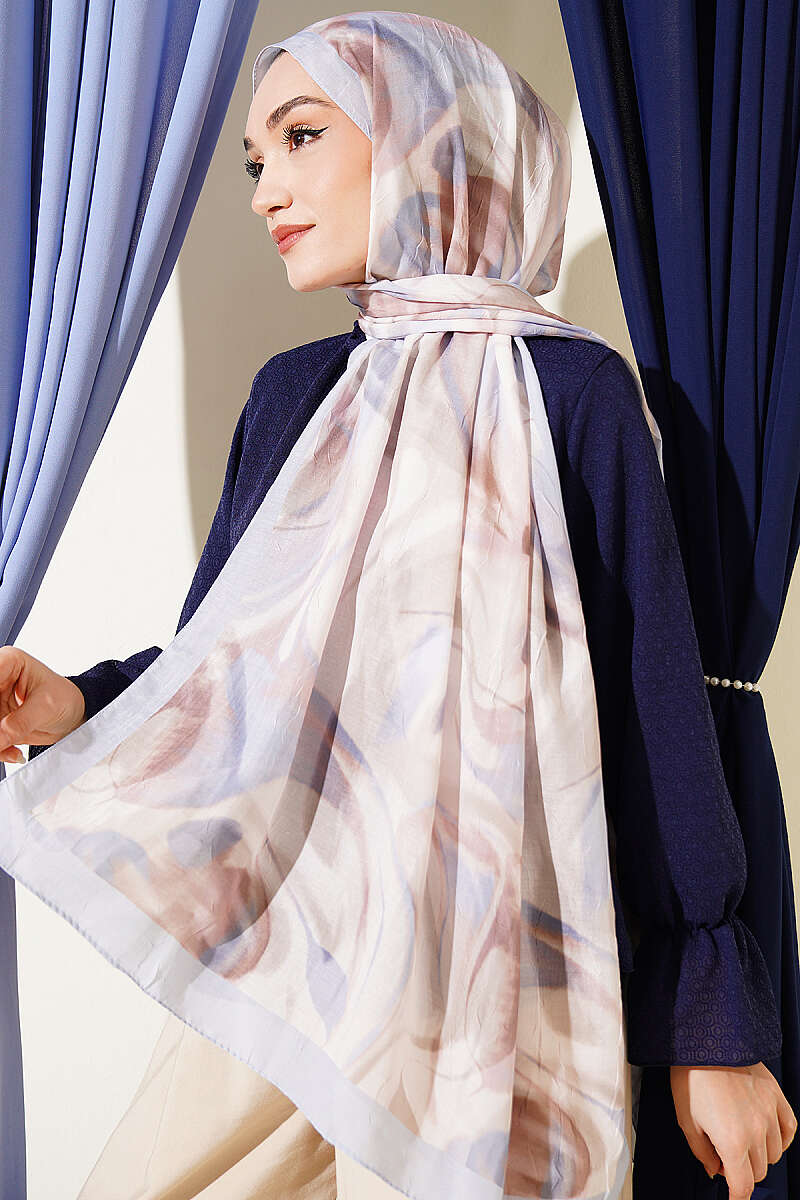 Şerit Geçişli Desen Detaylı Eşarp Vizon