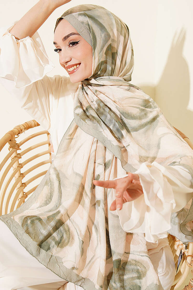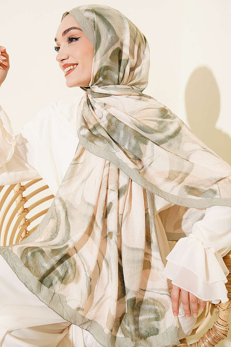 Şerit Geçişli Desen Detaylı Eşarp Kum Bej