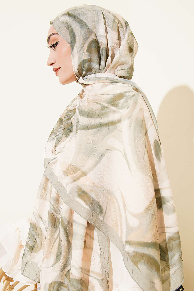 Şerit Geçişli Desen Detaylı Eşarp Vizon