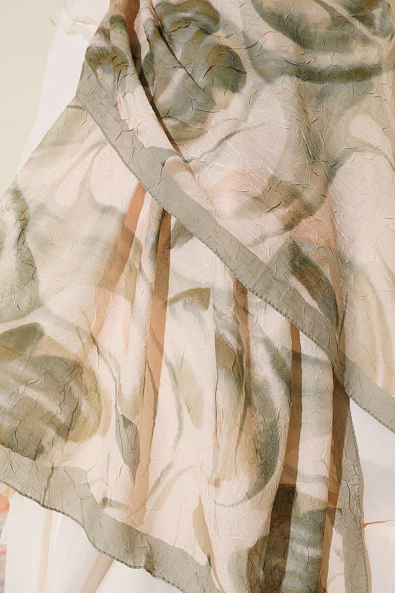 Soyut Yaprak Desen Bambu Kraş Şal Su Yeşili