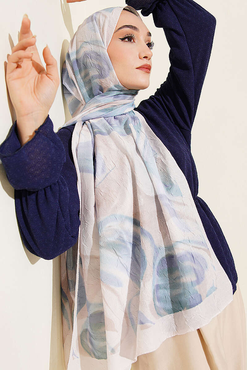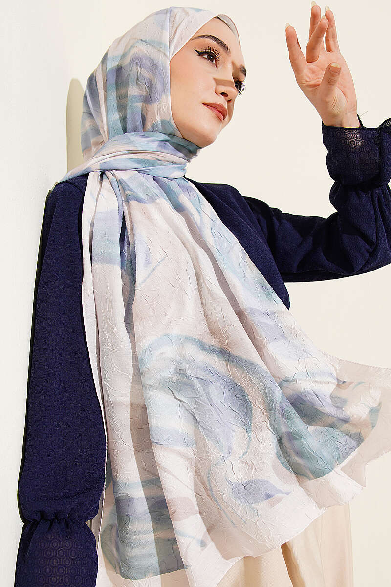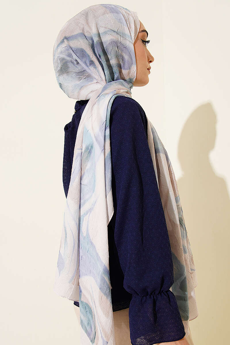 Şerit Geçişli Desen Detaylı Eşarp Somon
