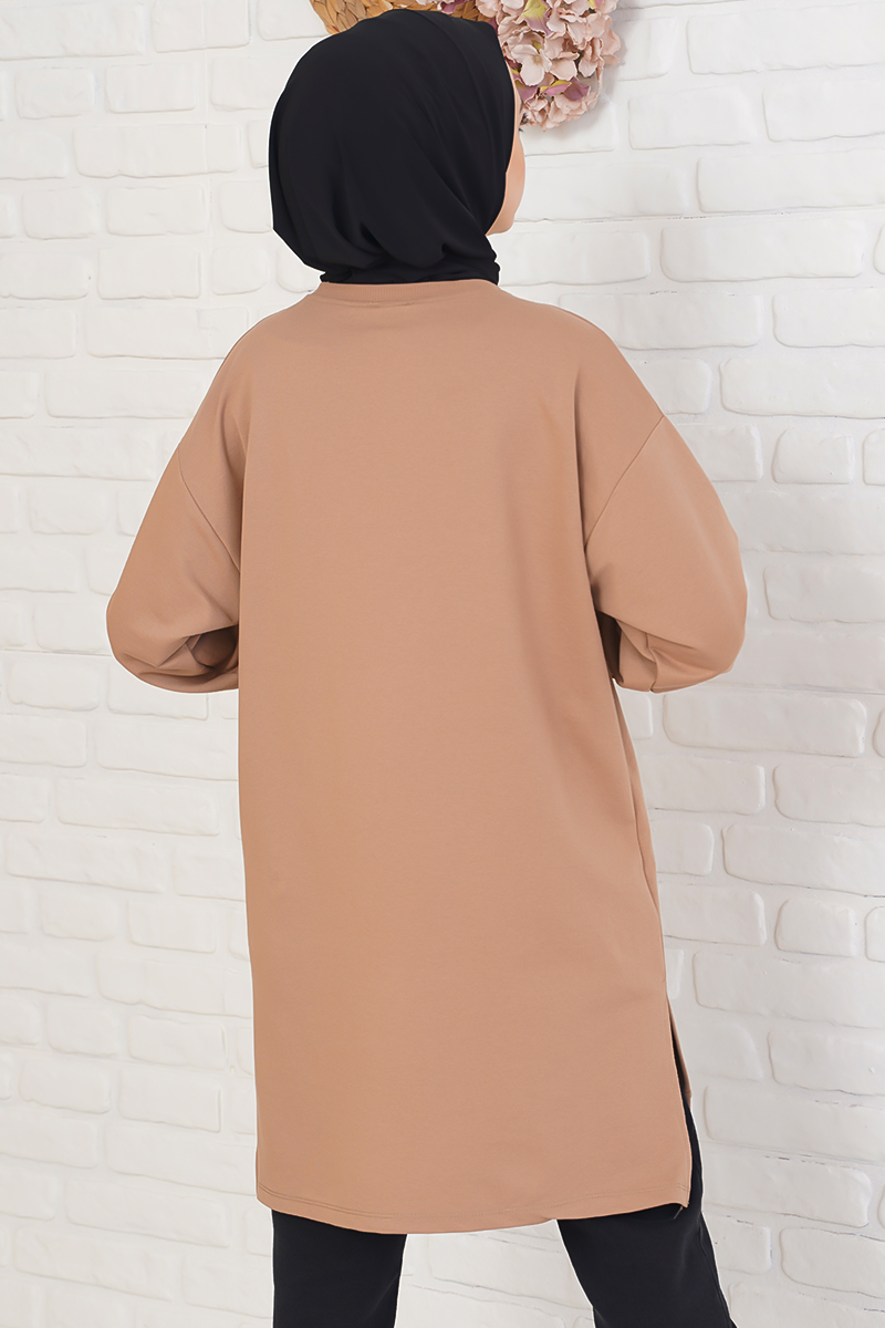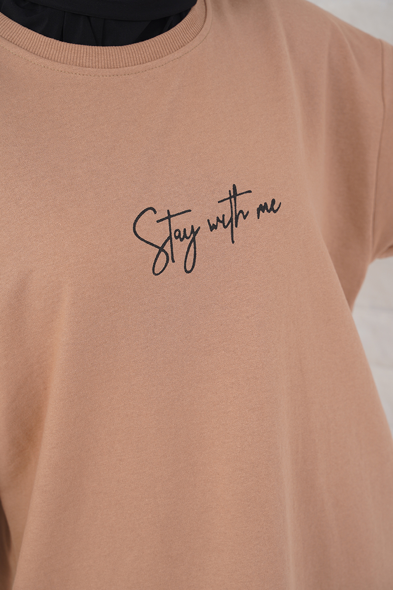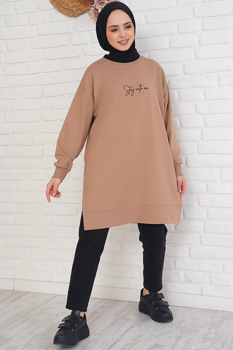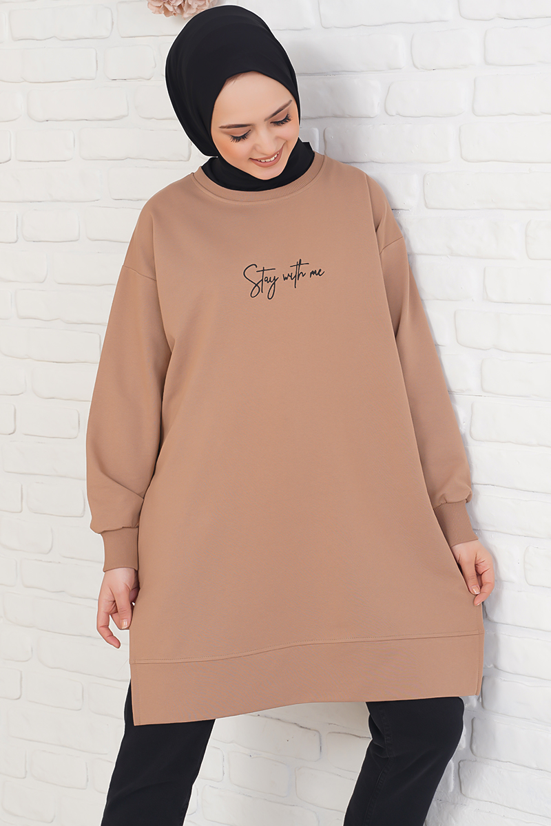 Yeni sezon model tuniğimiz bisiklet yakadır. Şıklığıyla göz kamaştıran ve rahatlığıyla konfor sağlayan tuniğimizin Stay with me baskılıdır. Tuniğimizin yanlarındaki yırtmaçları kullanımın açısından size kolaylık sağlacaktır.