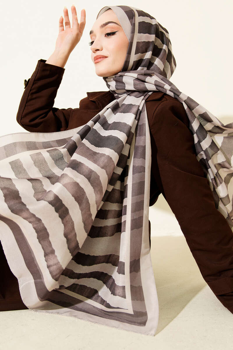 Desenli Acı Kahve Serisi Eşarp Asorti 11
