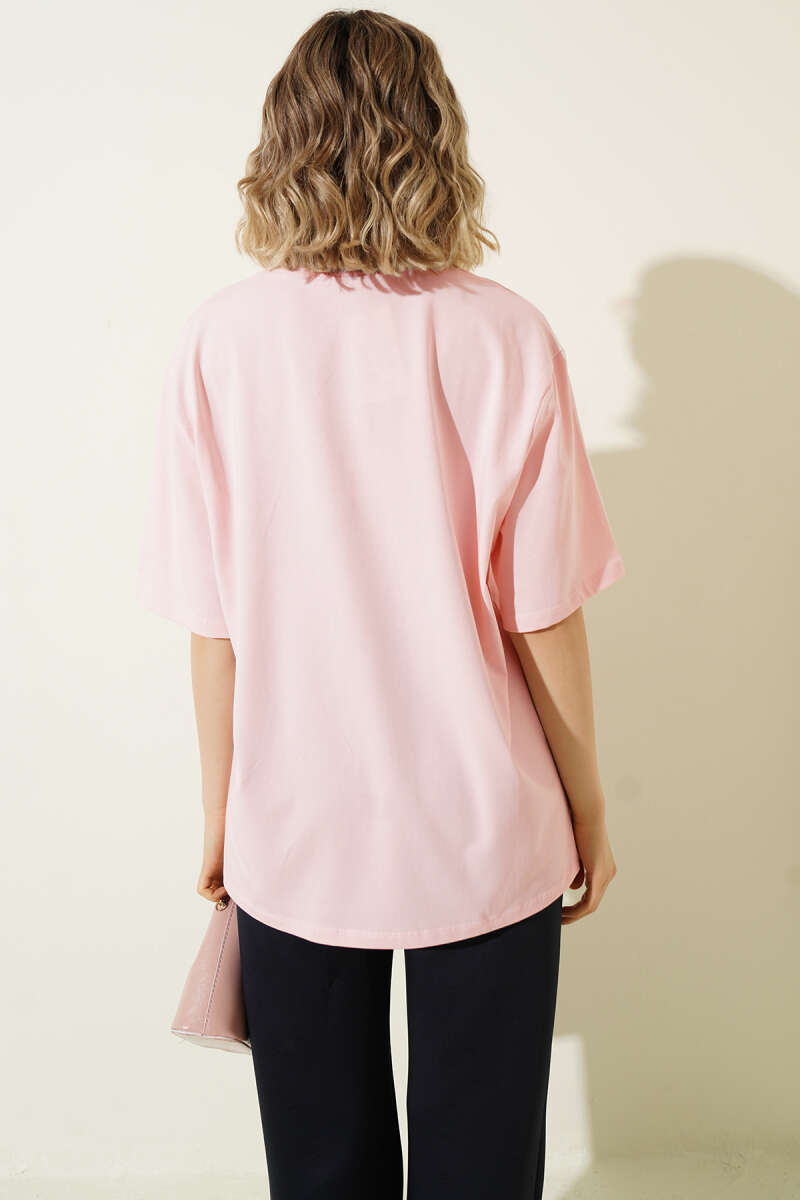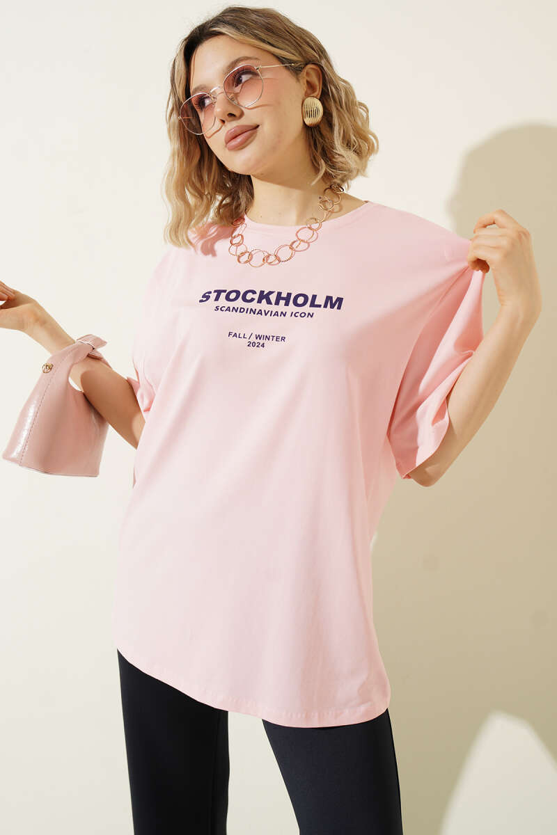 Stockholm Yazılı T-shirt Pudra