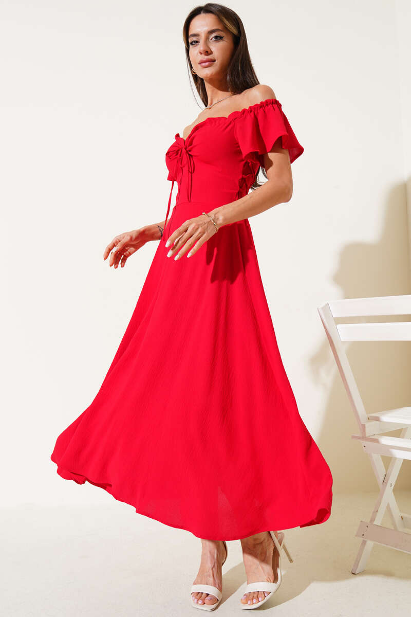 Balıkçı Yaka İp Kuşaklı Triko Elbise Lacivert