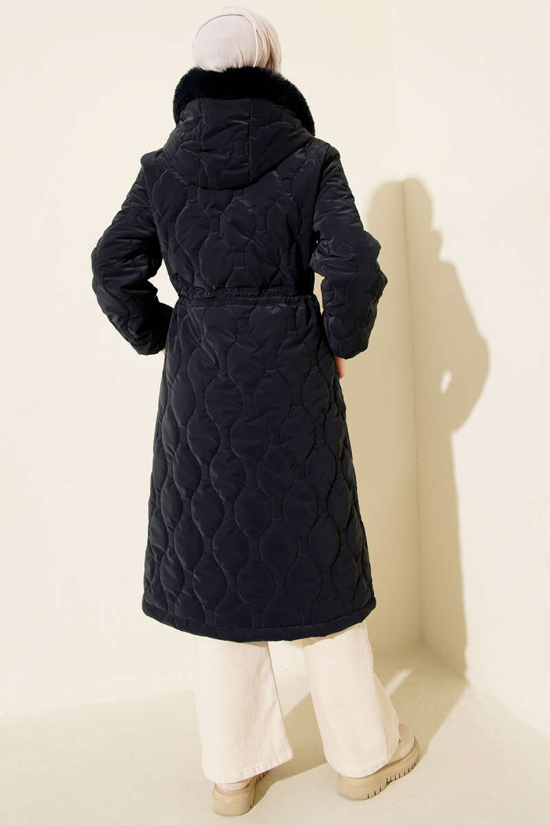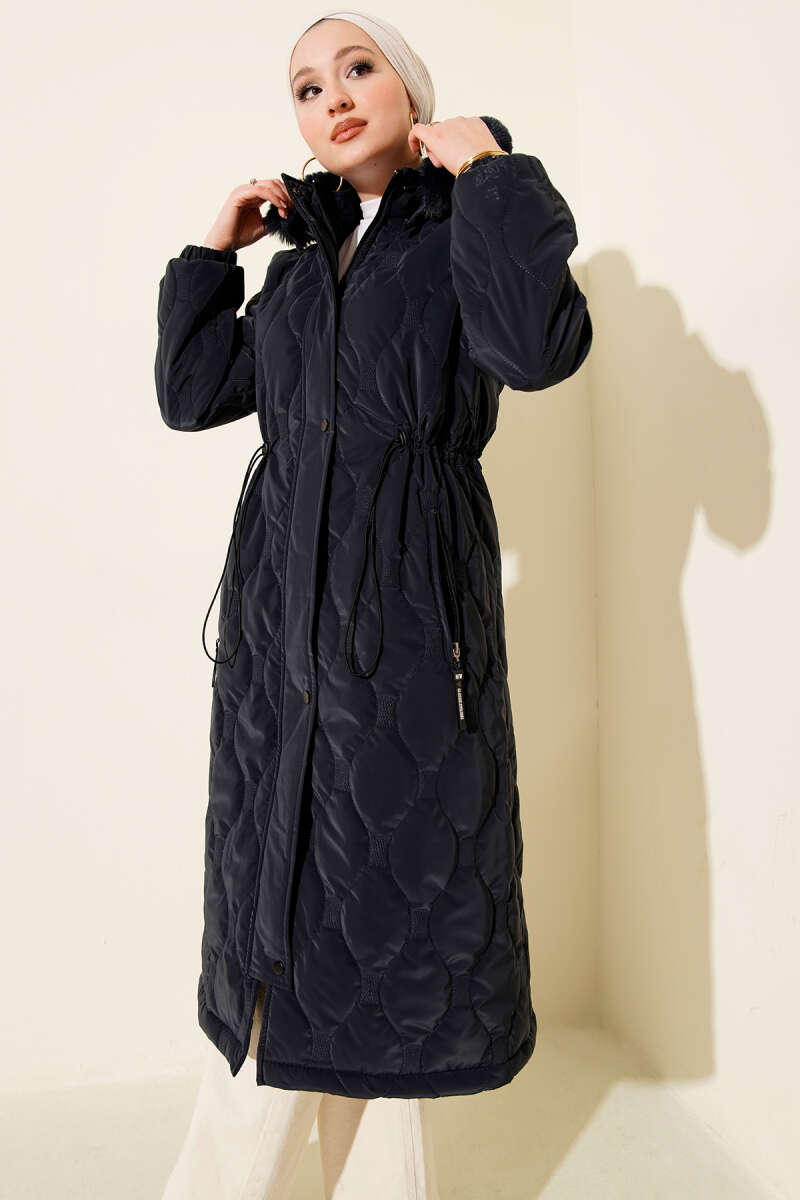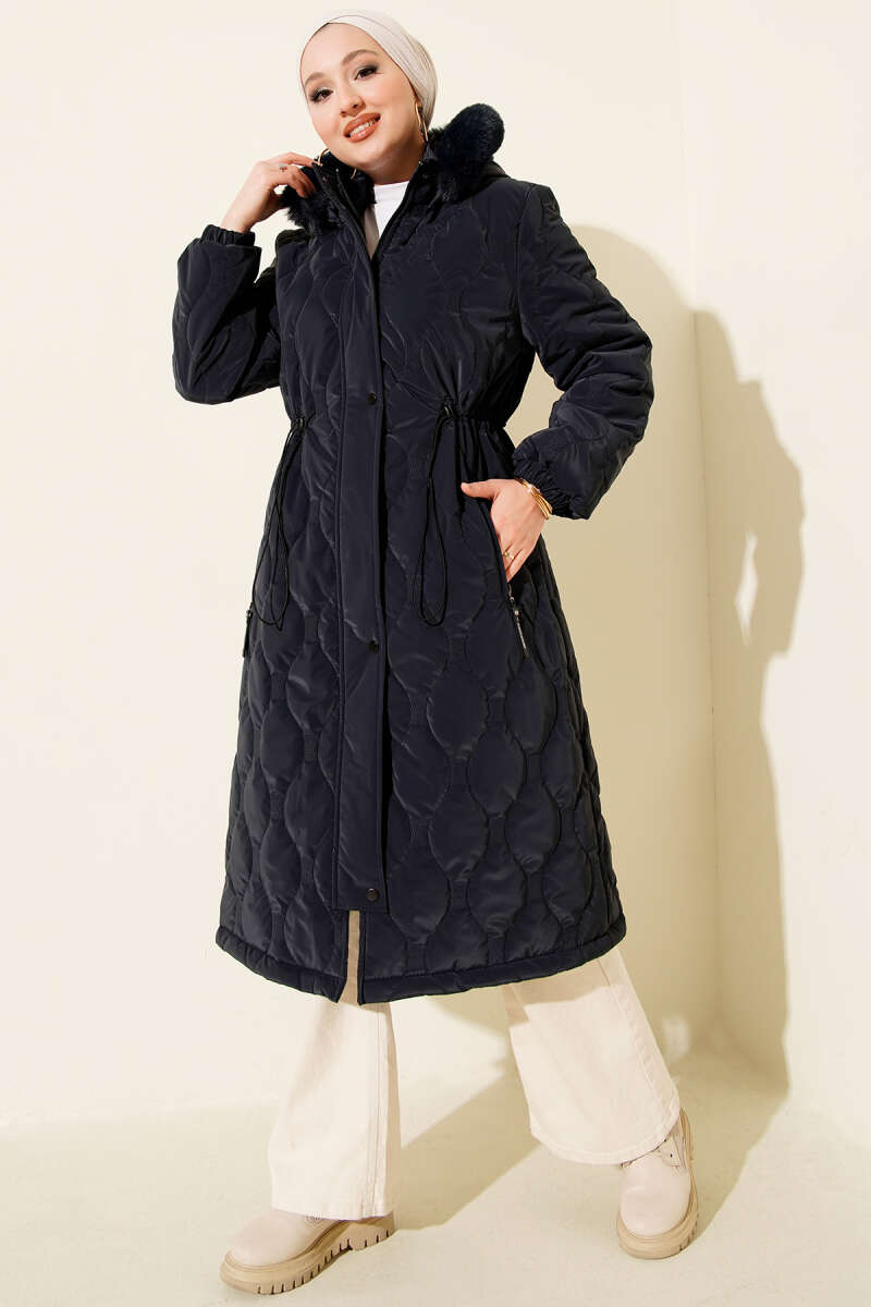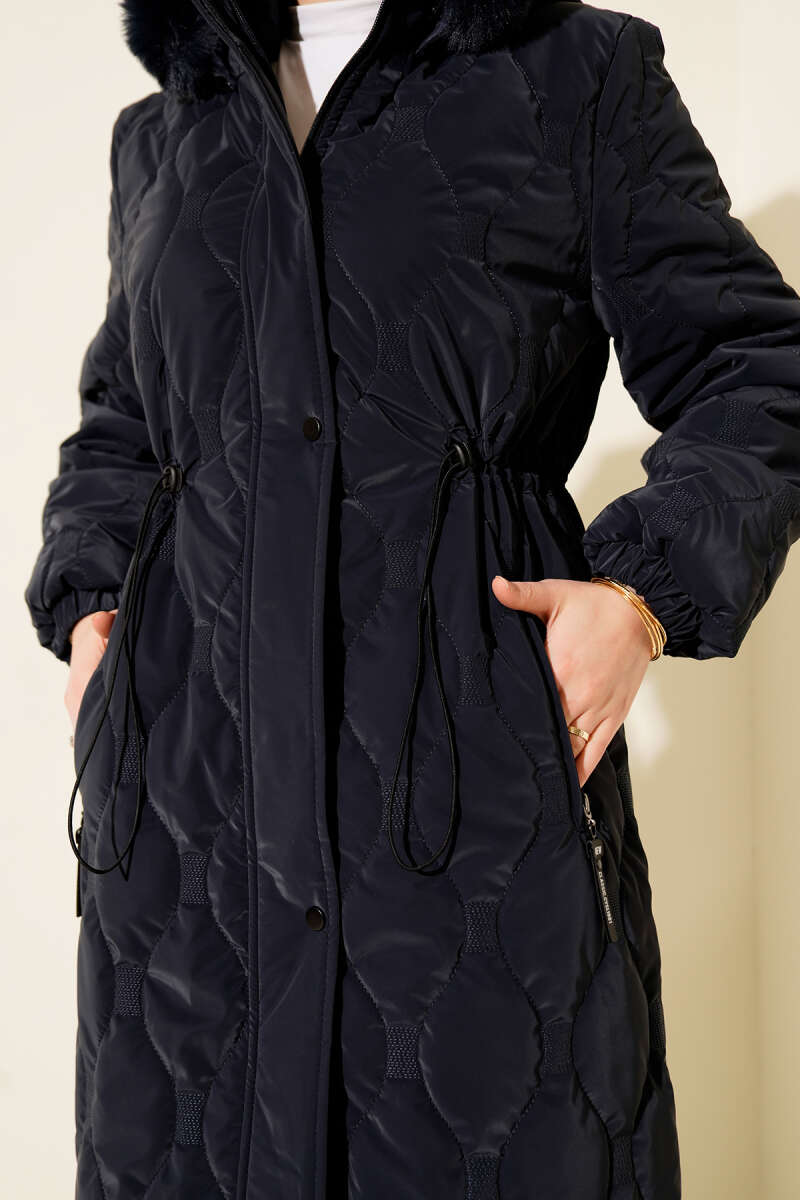Baklava Desen Bel Tünelli Kapitone Mont Lacivert